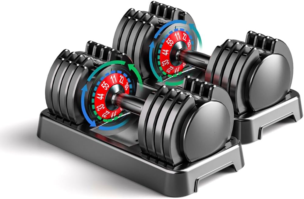 25/55lbs Adjustable Dumbbells Set, Dumbbells with Anti-Slip Metal Handle for Exercise & Fitness Fast Adjust Weight for Full Body Workout Fitness