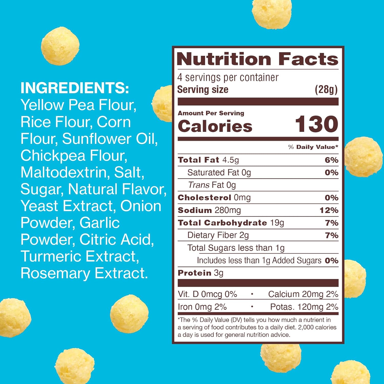 - Yellow Pea and Chickpea Puff Snacks: Made from humble but mighty legumes baked into a light and airy puff ball. Just like your favorite chips, popcorn, veggie straws, and other snack foods, they’re guaranteed to satisfy your crunchy, salty snack cravings.
