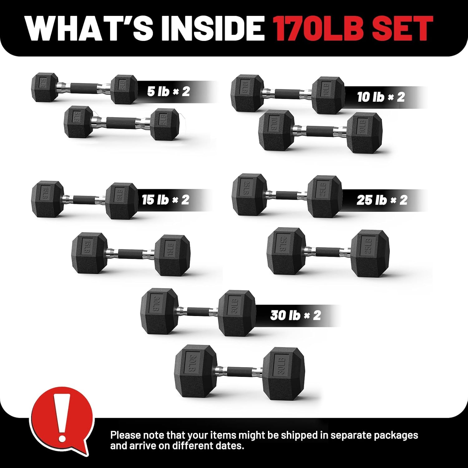 PAPABABE Hex Dumbbell Set 45-550 lb, Rubber Encased Home Gym Dumbbells, Weights Dumbbells for Women & Men, Hand Weight for Strength Training