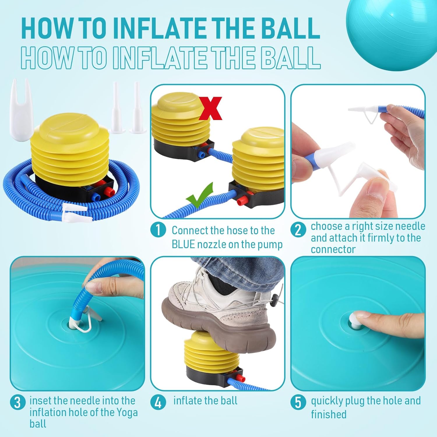 - Various Colors: you will receive 4 pieces of exercise balls for working out in turquoise color, equipped with 1 piece of foot pump, 1 piece of air pull, and 2 pieces of air plugs; The complete set can meet your exercise needs
