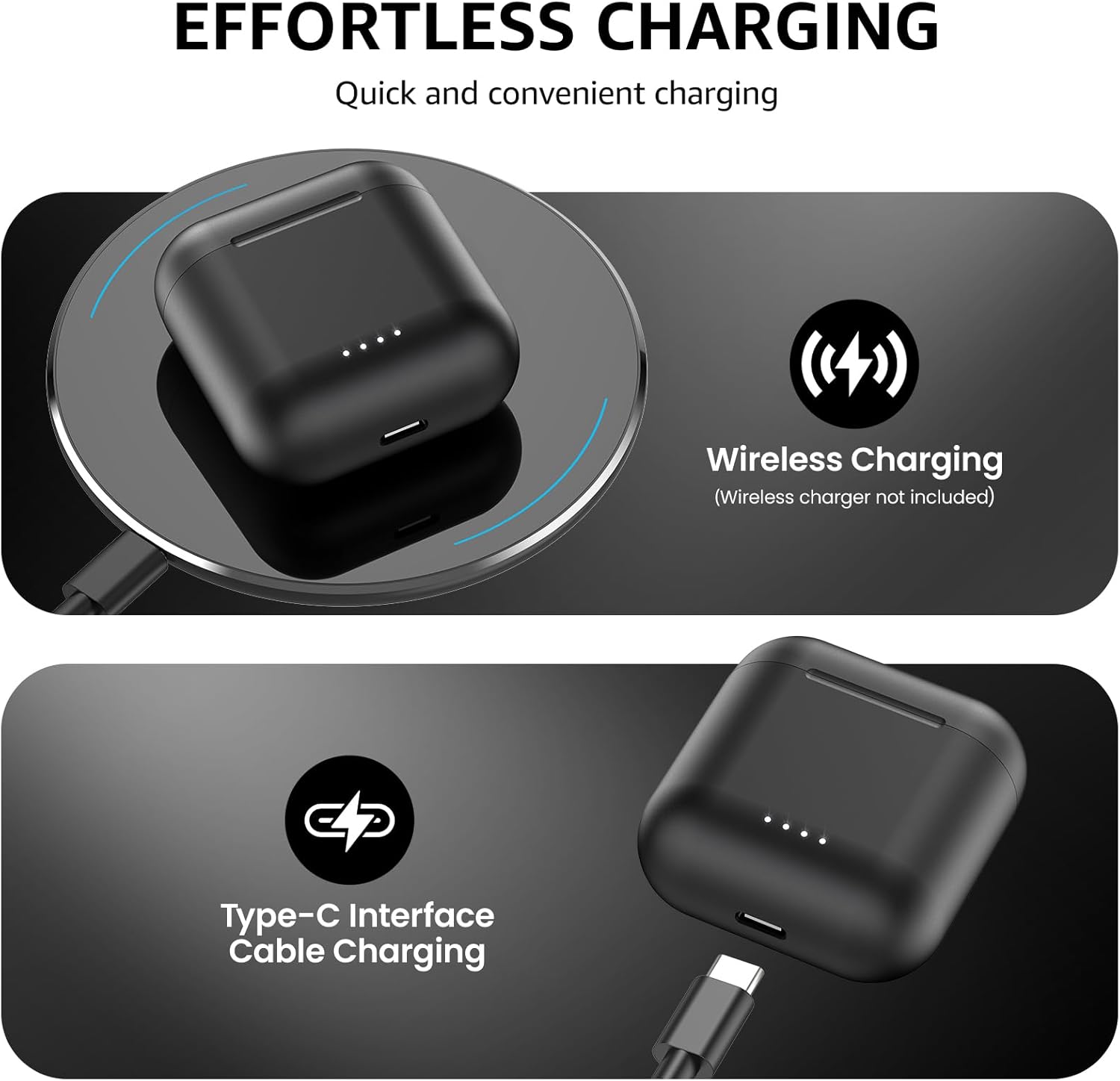 - [50Hrs Playtime Endurance] Get up to 10 hours of playtime on a single charge, and extend it to 50 hours with the charging case. Enjoy fast charging,the case fully charged in just about 55 minutes via USB-A to Micro USB cable, or under 2 hours wirelessly, offering a hassle-free charging experience.