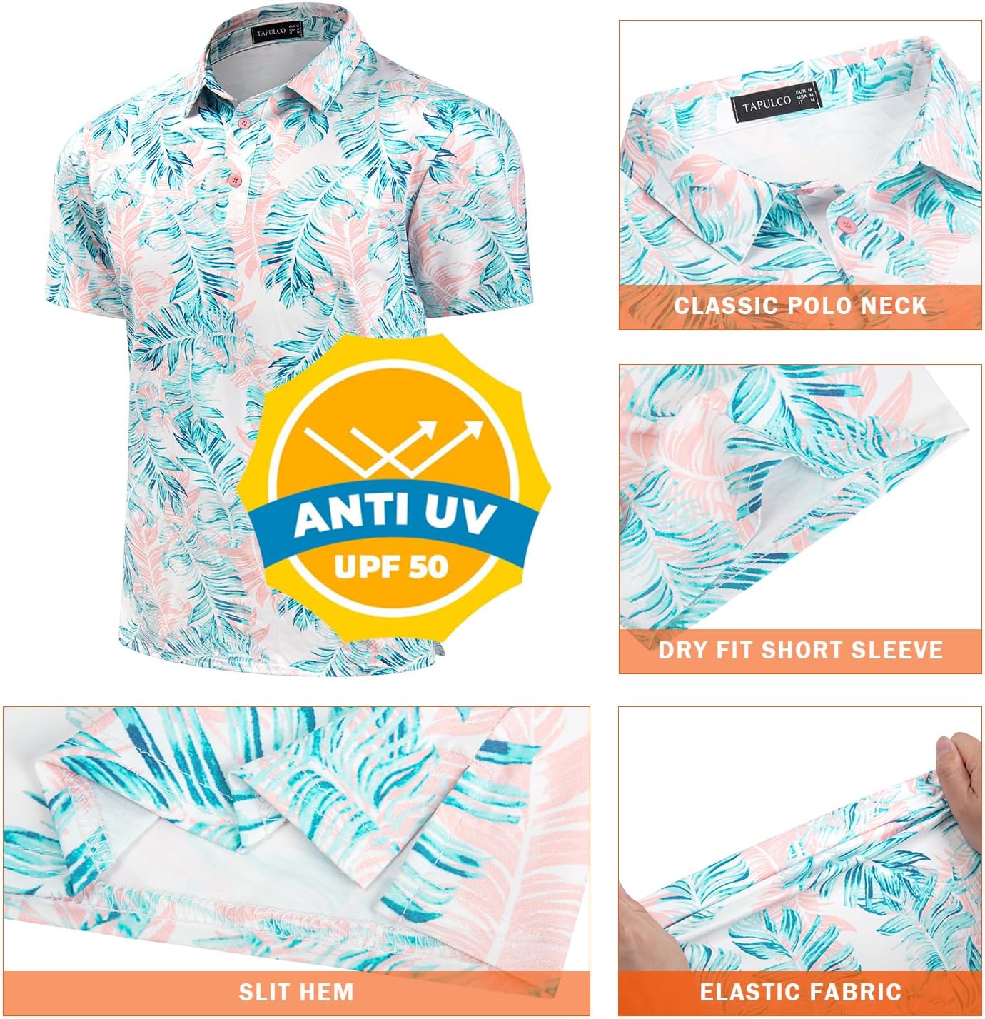 TAPULCO Mens Quick Dry Polo Shirts Camouflage Pattern Performance Athletic Lightweight Breathable Casual Golf Tshirts