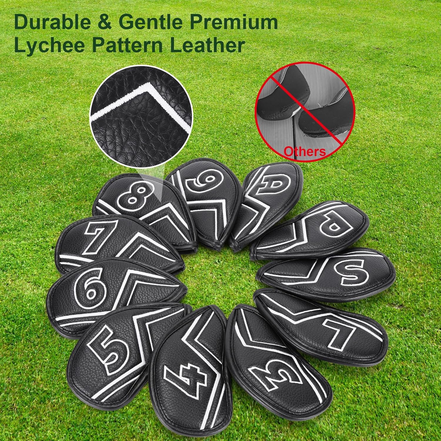 - 【Set of 11 to Fit Most Golf Clubs】This golf head cover set includes 11 head covers designed to fit most standard golf clubs. These magnetic leather golf iron head covers can provide the protection and organisation your clubs need.