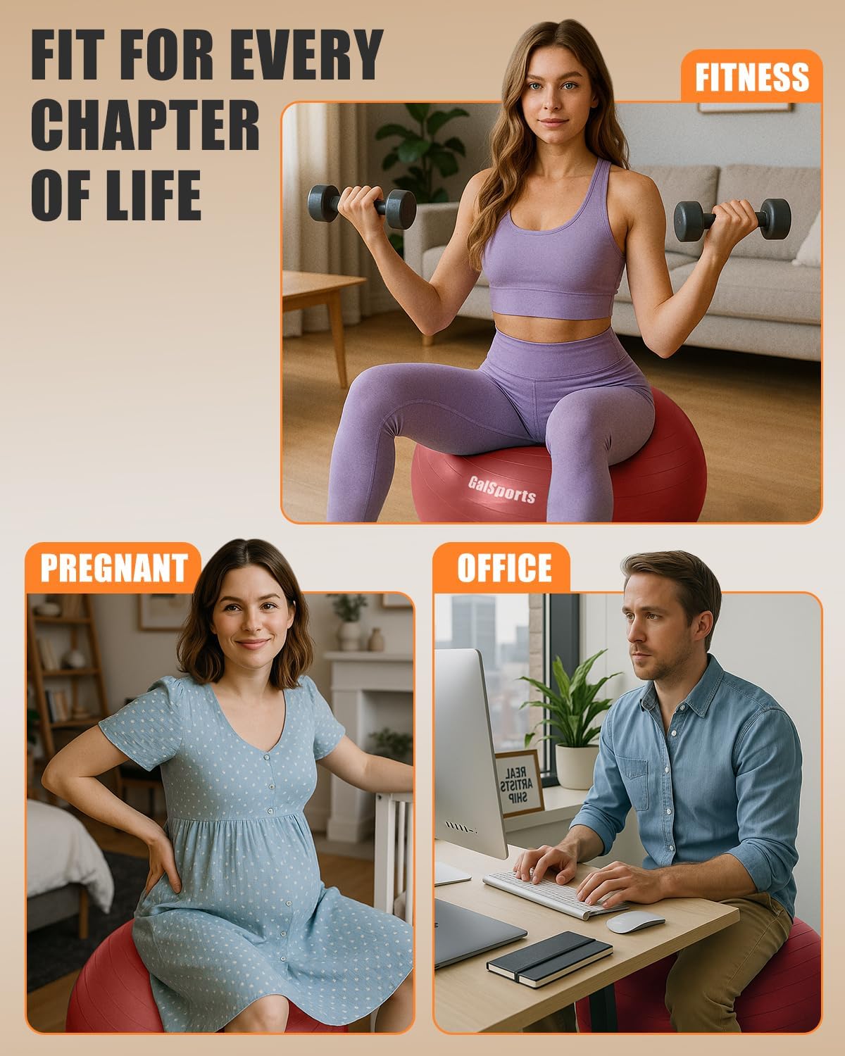 GalSports Anti-Burst Slip Resistant Stability Ball - Swiss Ball for Home Gym & Physical Therapy