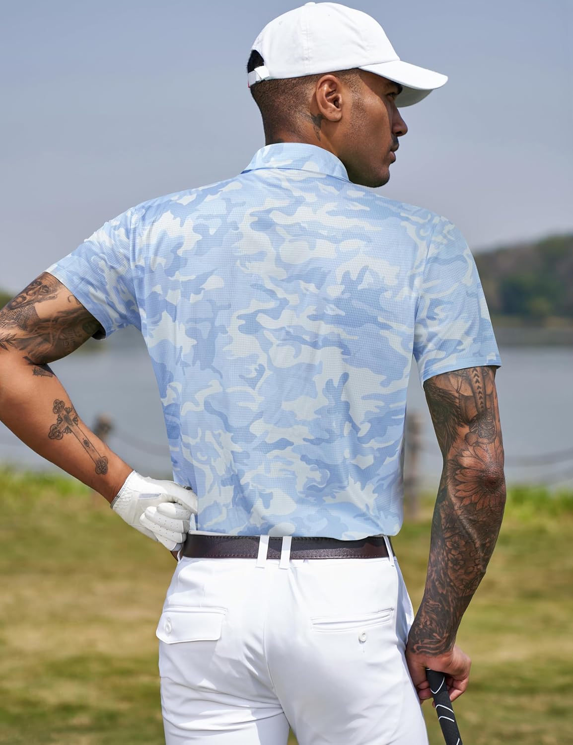 TAPULCO Mens Quick Dry Polo Shirts Camouflage Pattern Performance Athletic Lightweight Breathable Casual Golf Tshirts
