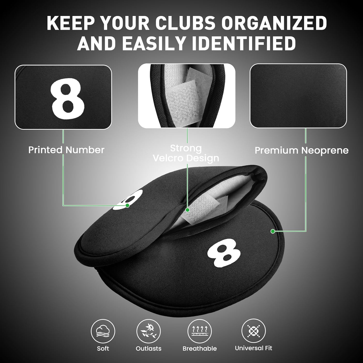 - Complete Iron Set Coverage: This 12-piece set includes covers for every essential iron (3, 4, 5, 6, 7, 8, 9, PW, AW, SW, LW), ensuring full protection for your entire bag. Each numbered covers matches your clubs perfectly, eliminating mix-ups during rounds.