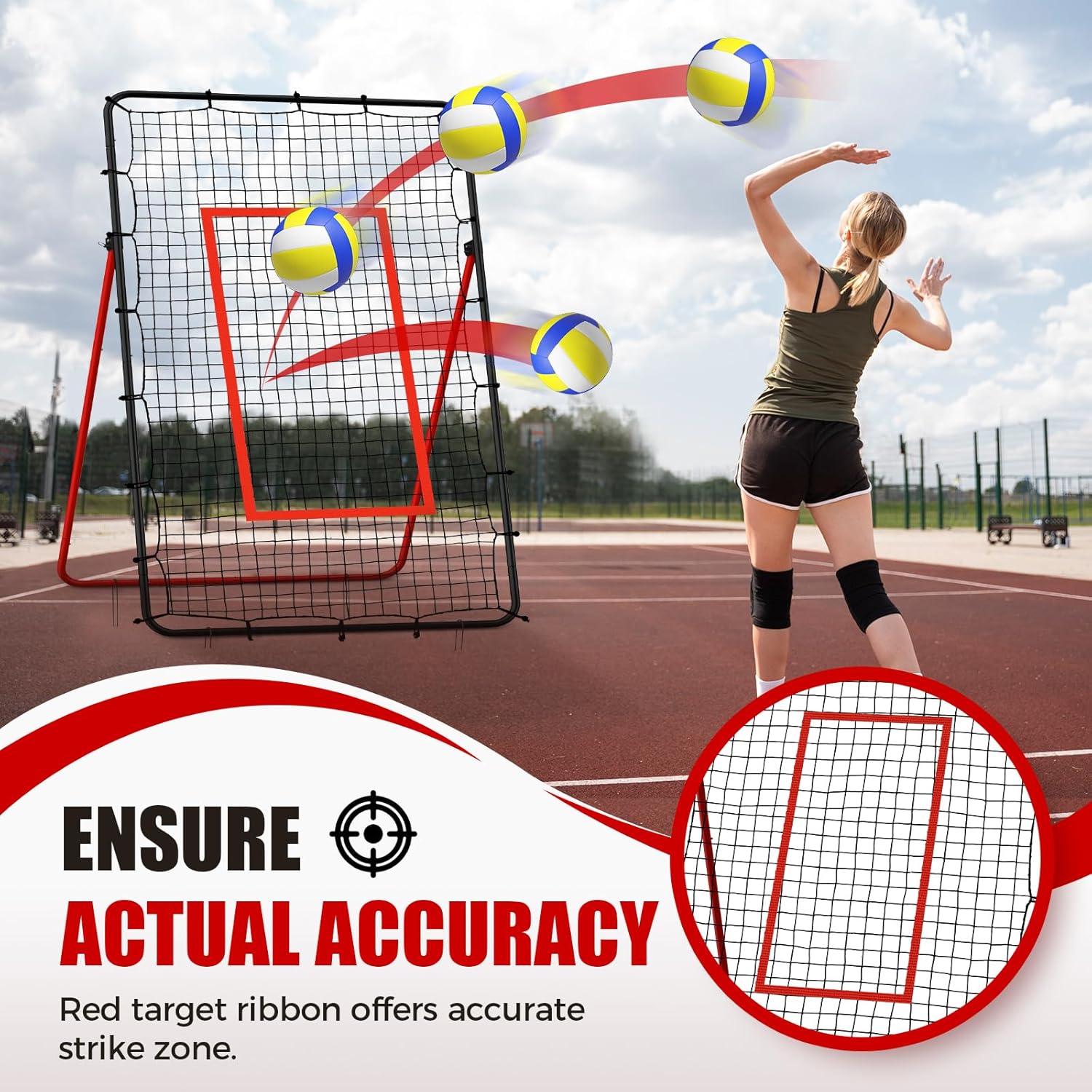 - 【Multi-Player Training Solution】From solo bounce-back drills to 4v4 team competitions, this volleyball rebounder net adapts to all skill levels. Features micro-adjustable rebound tension (8-22 psi) and removable center strap for customized training modes - ideal for setting practice, overhand serving, and defensive positioning