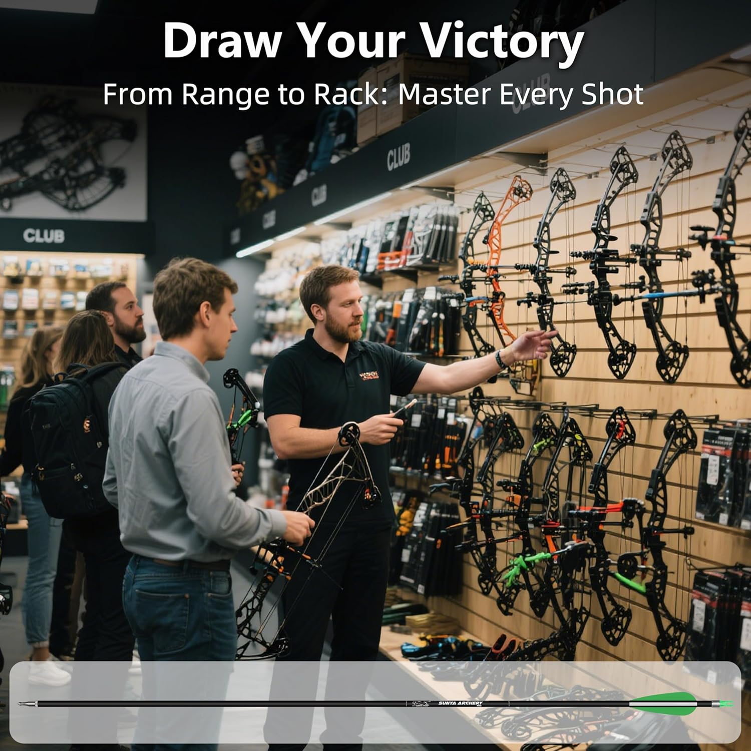 - Premium Carbon Fiber 12 pcs arrows set. Shaft Length: 30in, Full Length: 31.5in. Fit for most compound bow & recurve bow which draw weight 40-60 LBS.