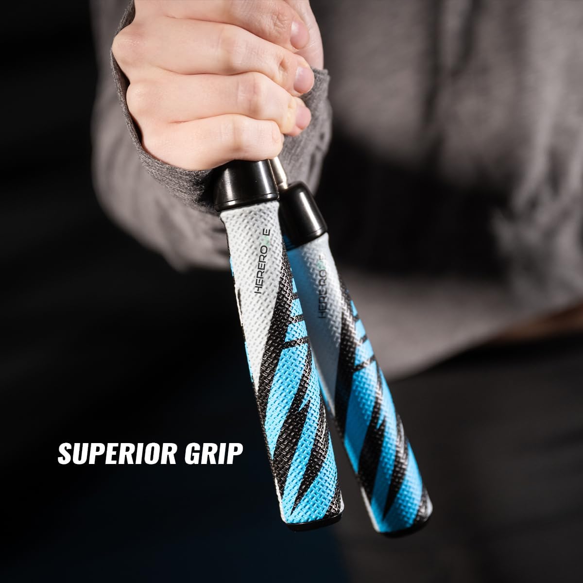 Hererope 3 In 1 Jump Rope for Men & Women, 1/6lb, 1/4lb, 1/2lb Interchangeable Weighted Jump Rope Set with Precision Ball-Bearing, Anti-Slip Leather Grip - Jump Ropes for Fitness, Speed Training, Endurance Building & Total Body Workout