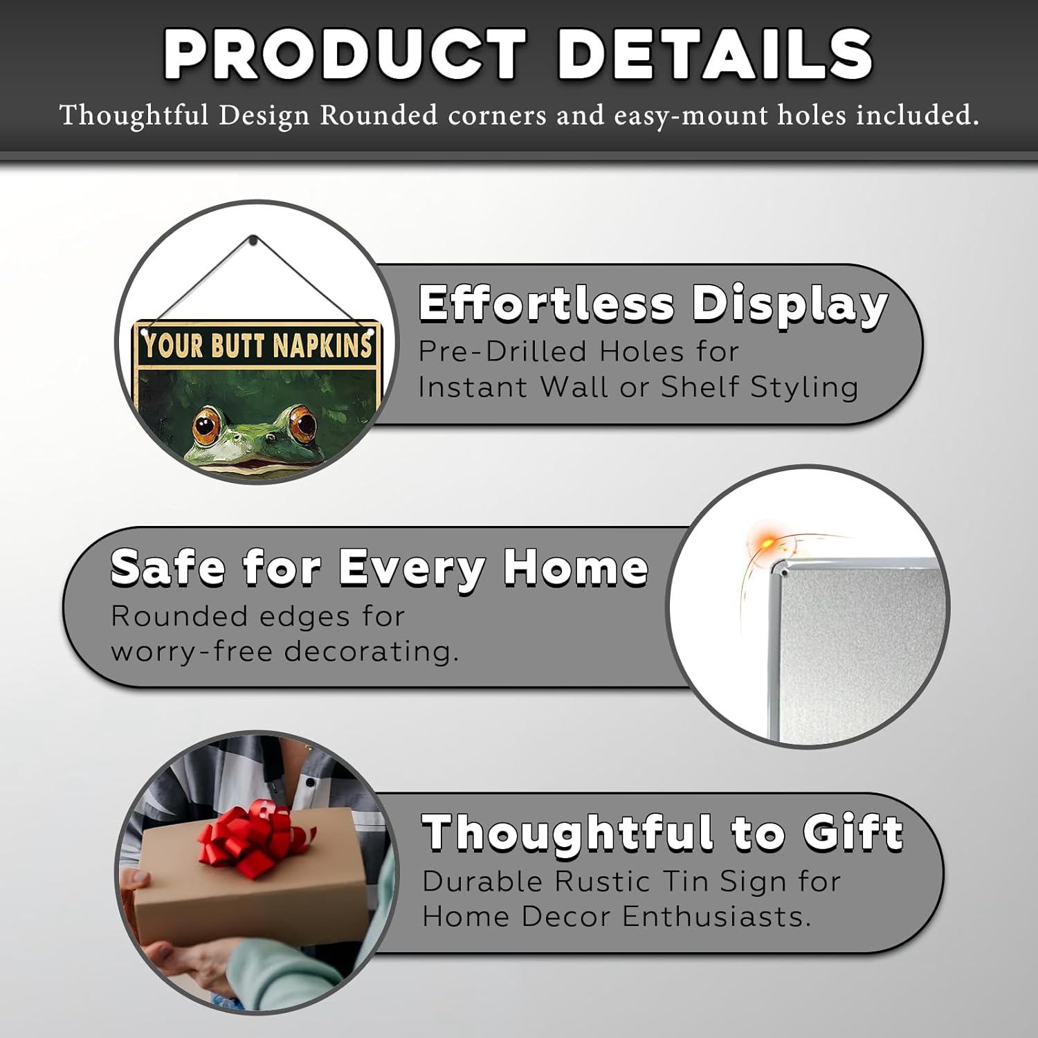 Funny Frog Bathroom Toilet Decor Metal Sign Frog Your Butt Napkin My Lord Vintage Tin Sign for Bedroom Toilet or Bathroom Wall 12 * 16inch