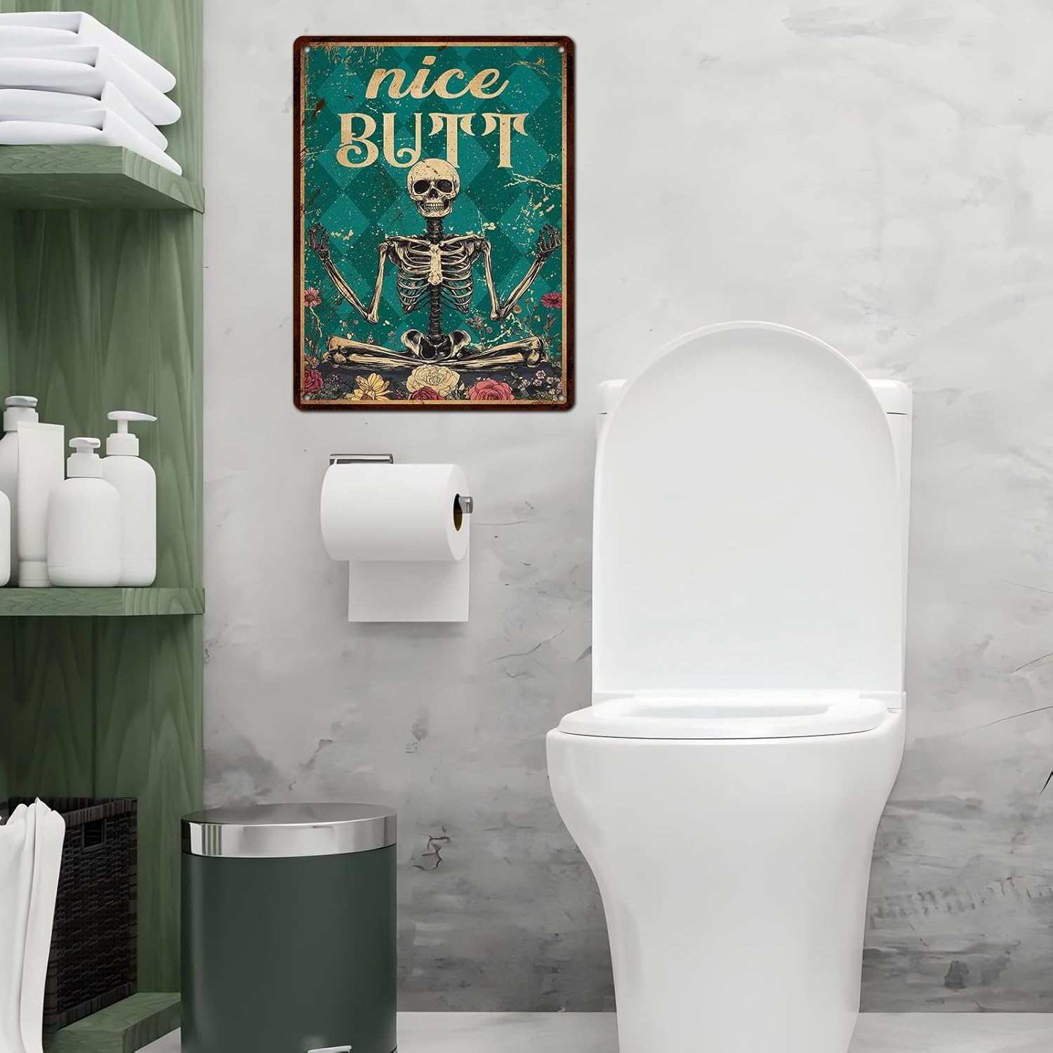 Skeleton Decor Tin Sign Retro Funny Skeleton Metal Sign for Bedroom Cafe Home Coffee Kitchen Bathroom Funny Wall Decor Art 12 * 16inch