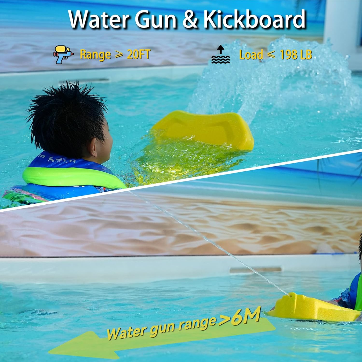 - Fun Pool Toy: In addition to gliding in water, the Electric Kickboard is equipped with a water gun with a range of over 20 feet, offering more diverse and flexible ways for kids to play.