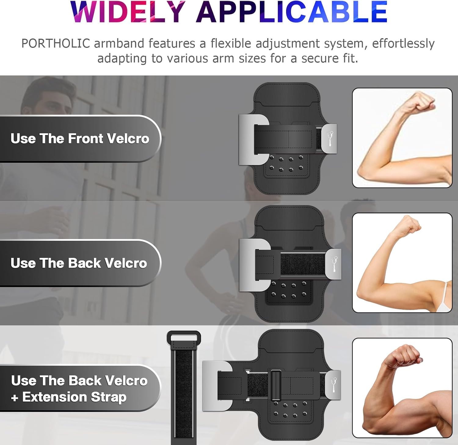 PORTHOLIC 2025 Running Armband Water Resistant Sports Phone Holder Case with Extension Strap, Key Card Slot Up to 6.9" Phone for iPhone 17/16/15/14/13 Plus Air Pro Max XR/XS, Galaxy S25/24/S10