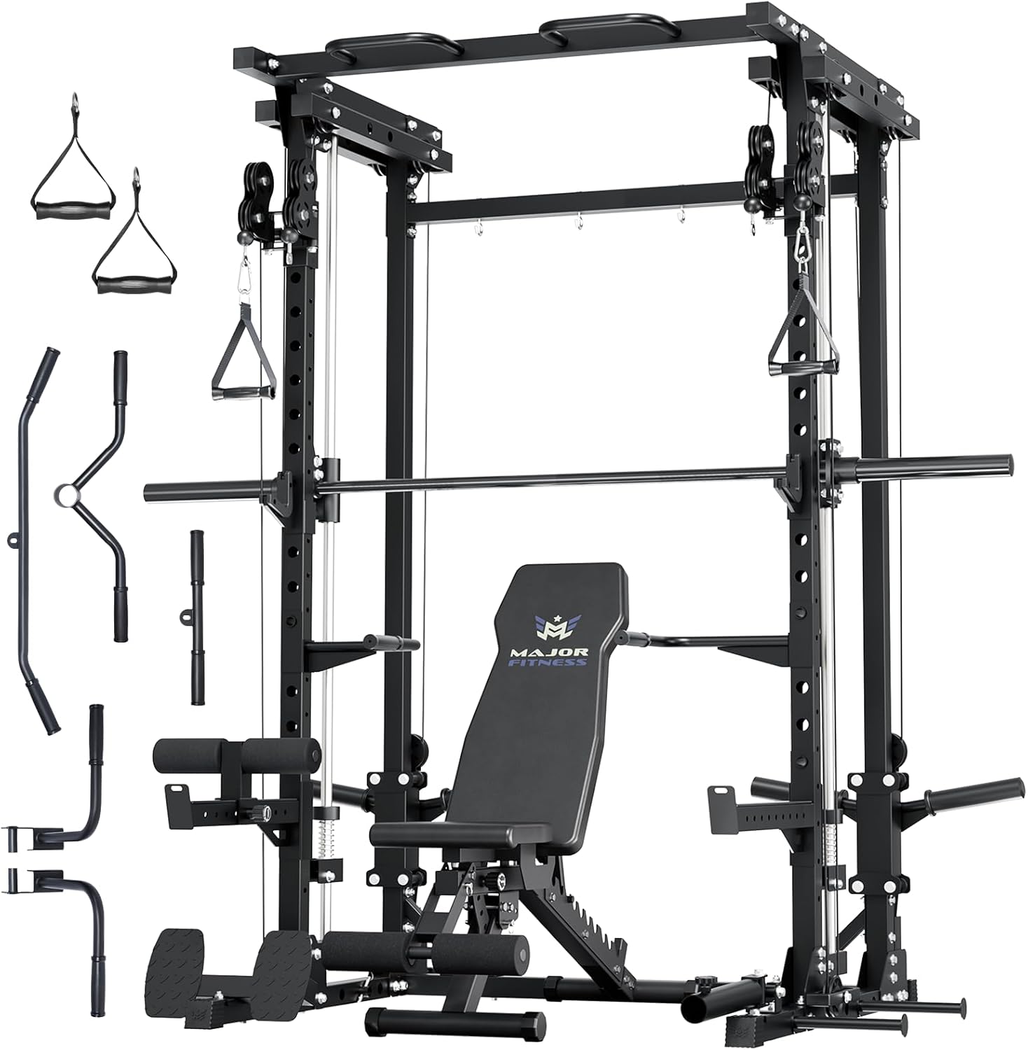 Major Fitness Drone3 Smith△ Machine – All-in-One Home Gym Squat Rack with Weight Bar, Cable Crossover Machine – Heavy-Duty Fitness Equipment for Strength Training and Full-Body Workouts