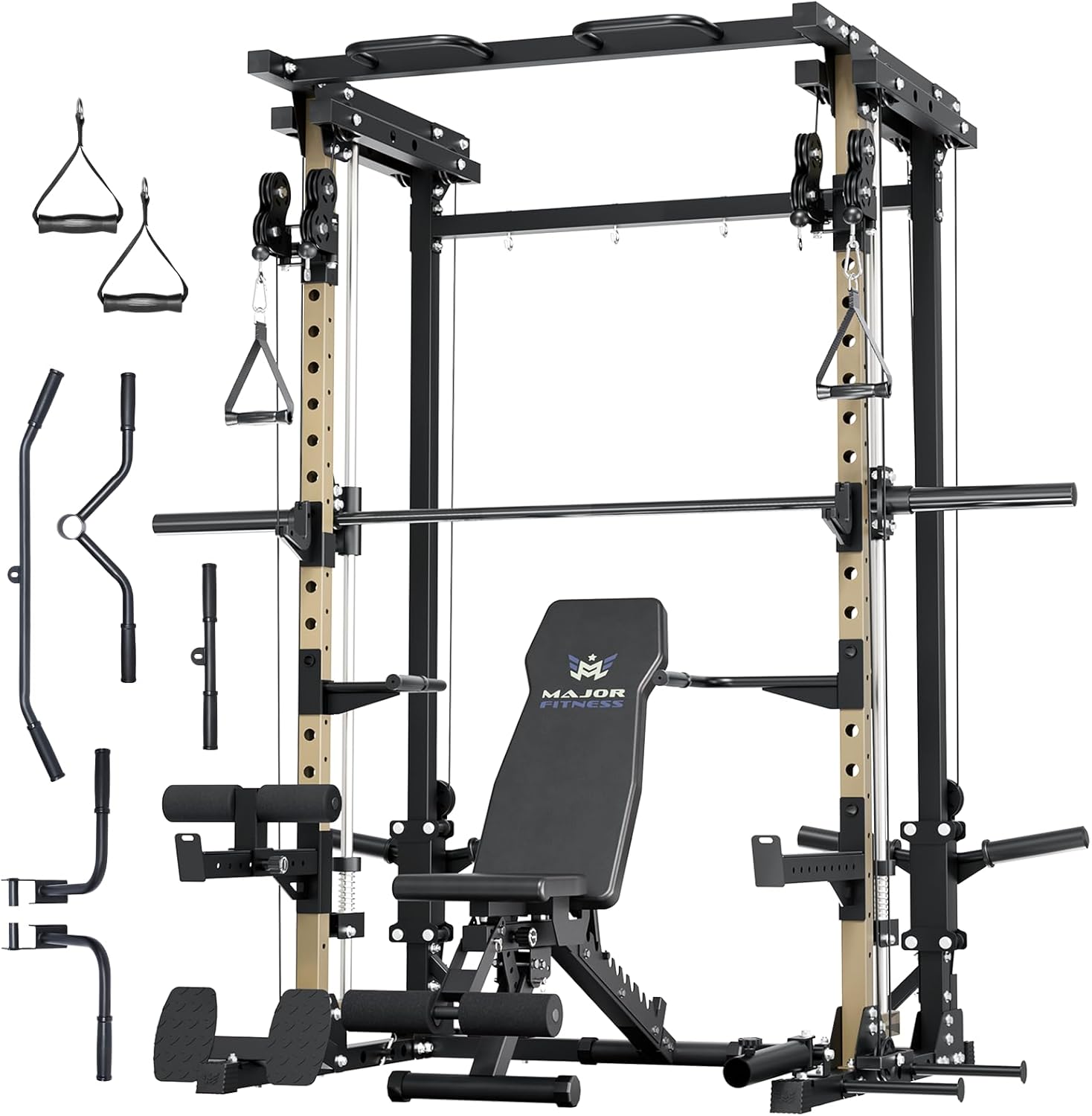 Major Fitness Drone3 Smith△ Machine – All-in-One Home Gym Squat Rack with Weight Bar, Cable Crossover Machine – Heavy-Duty Fitness Equipment for Strength Training and Full-Body Workouts