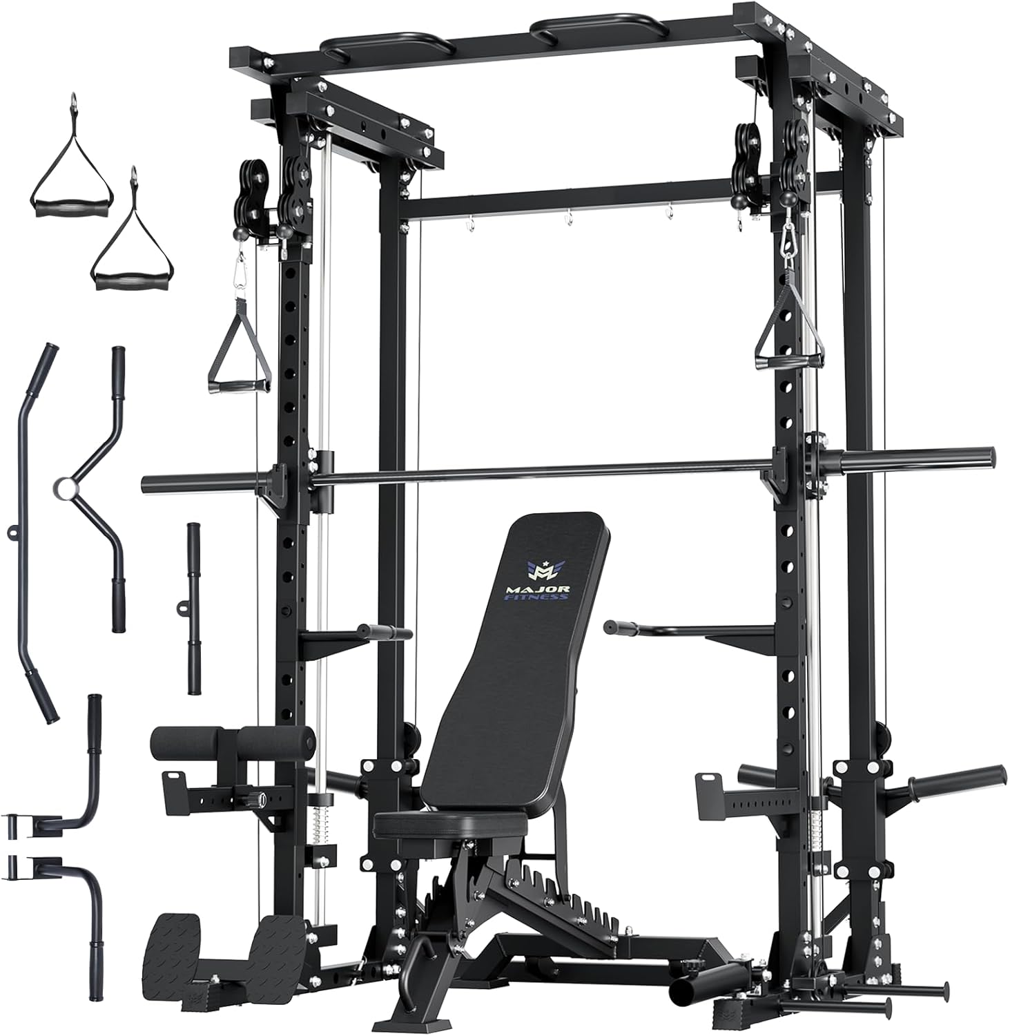 Major Fitness Drone3 Smith△ Machine – All-in-One Home Gym Squat Rack with Weight Bar, Cable Crossover Machine – Heavy-Duty Fitness Equipment for Strength Training and Full-Body Workouts