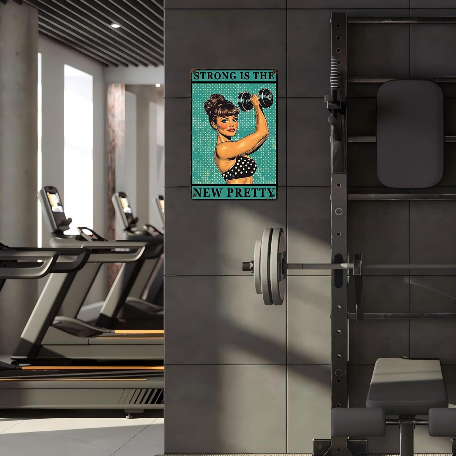 Gym Room Sign Weightlifting Metal Poster Strong Is The New Pretty Motivational Sign for Gym Workout for Home Fitness 12 * 8inch