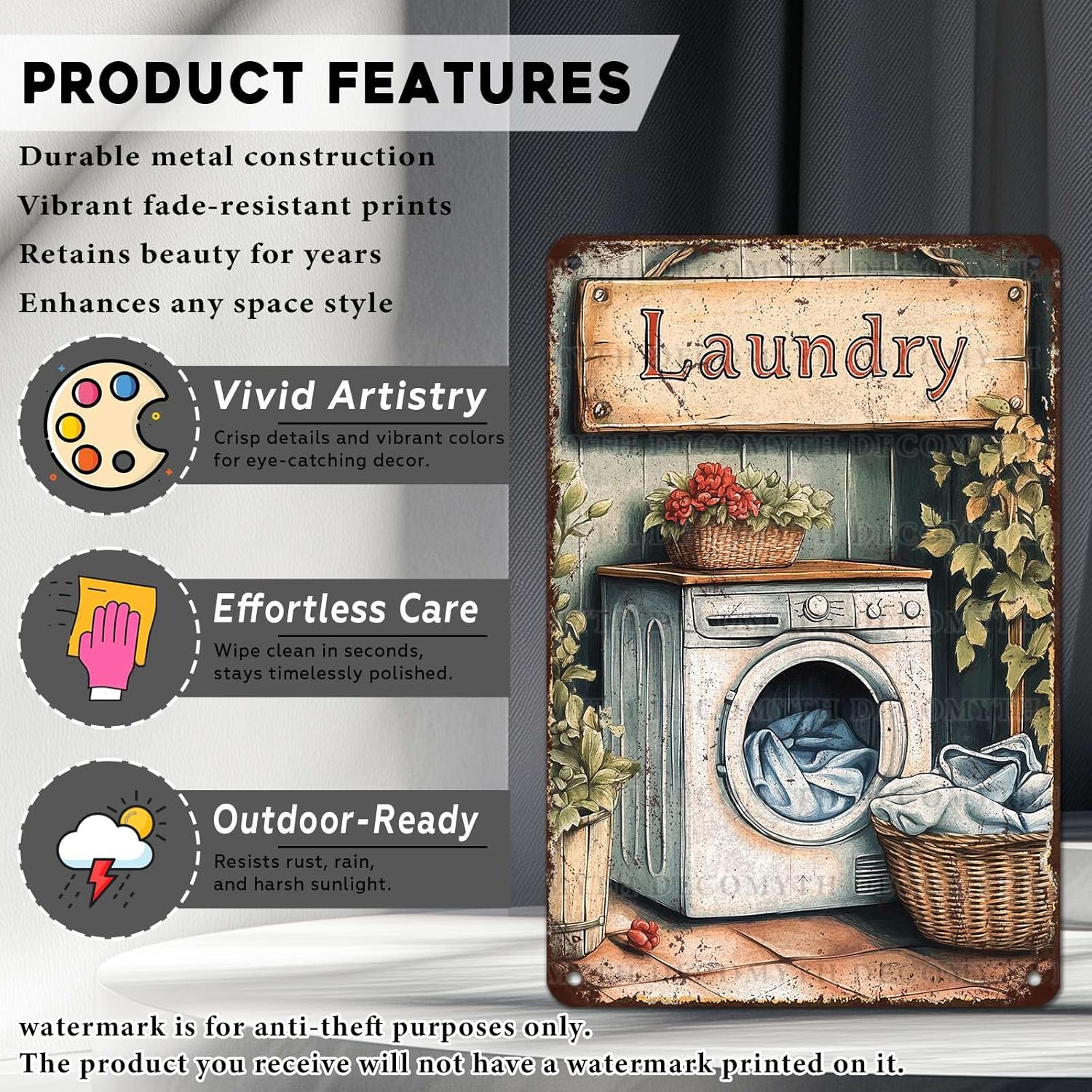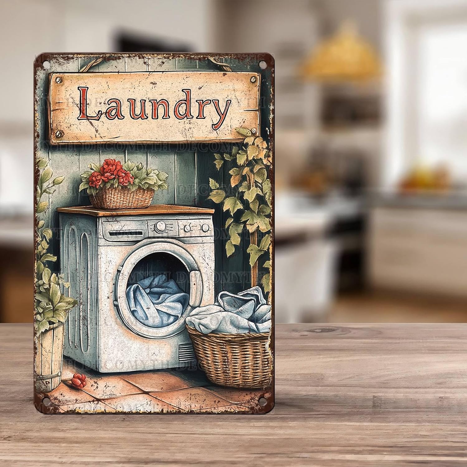 Vintage Laundry Room Tin Sign Retro Metal Poster Funny Laundry Wall Art Cafe Toilet Farm Room Garden Plaque Outdoor Farmhouse Decor Bathroom Restroom 12 * 8inch