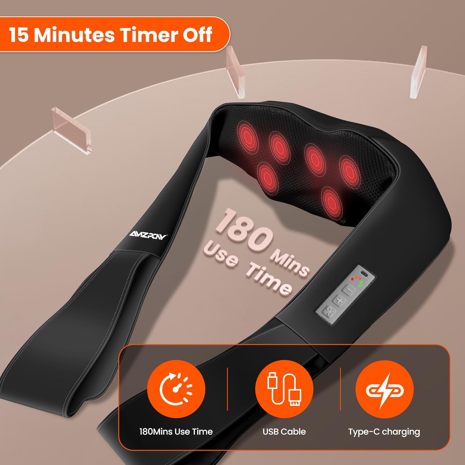 - 【Good Service】 Shiatsu neck and shoulder massager with heat, Deep kneading massage for relaxation, Body muscle pain relief. If you have any issues with the AMZPON neck massager, please contact us first. We'll resolve your concerns promptly and also support unconditional replace. We’d like to address any issues or concerns you have. Your satisfaction is important.