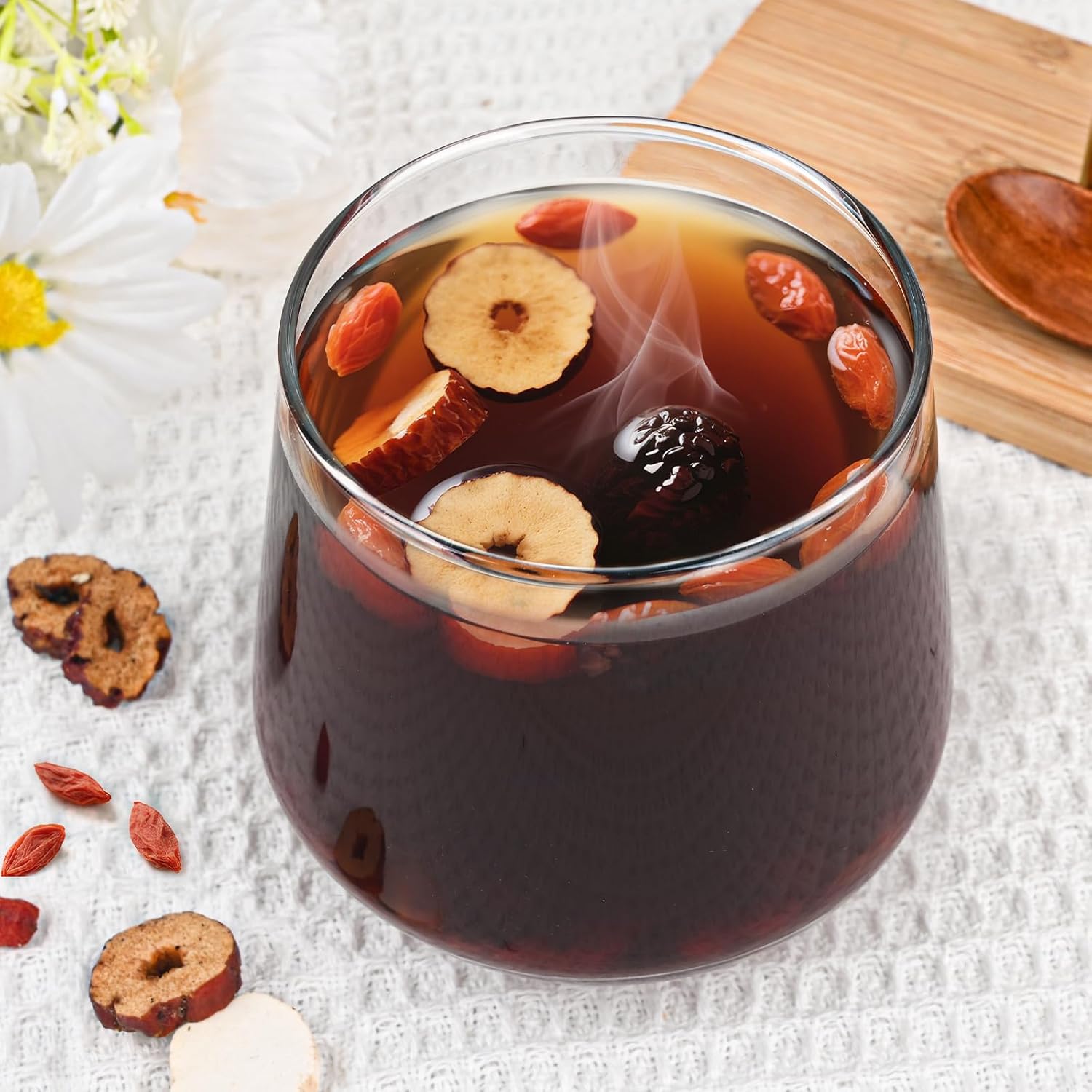 - Natural Herbal Ingredients:Ginseng tea contains Huang jing, Maca, Wolfberry, Red dates, Yam, Mulberry, Cooked rehmannia root, Pueraria root, Ginseng (artificially grown for 5 years and less), according to the traditional recipe, without any artificial additives or chemicals, you can eat the ingredients with peace of mind.