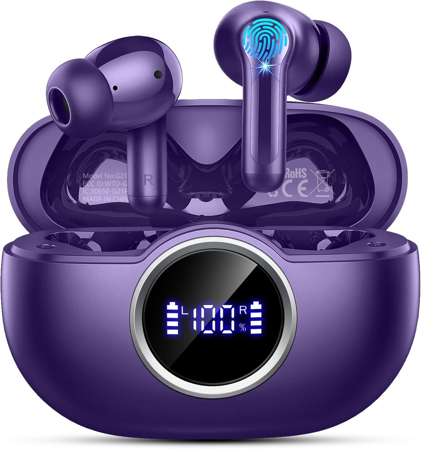 - 【Anti Slip, Lightweight Design】The 34g charging case with anti sweat matte coating is perfect for the pocket size of jeans. The high-quality sandblasted texture can prevent it from falling off while running - three times more gripping than other earbuds wireless Bluetooth. Whether you are indoors, outdoors, working, or traveling, our wireless earbuds allow you to enjoy personal music moments.
