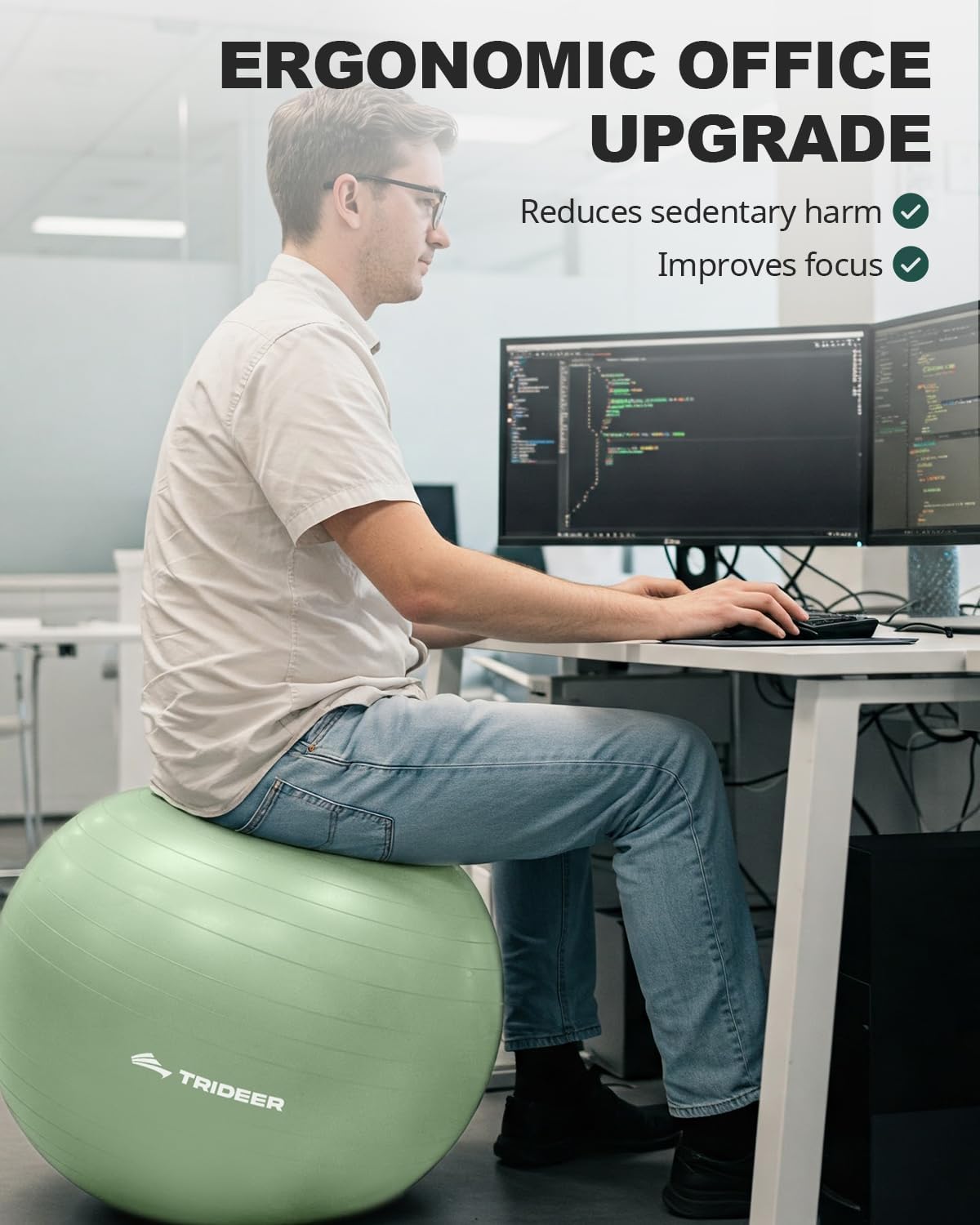 Trideer Yoga Ball – Anti-Burst Exercise Ball for Pregnancy, Office, Birthing, Stretching & Core Workout – Home Gym & Therapy