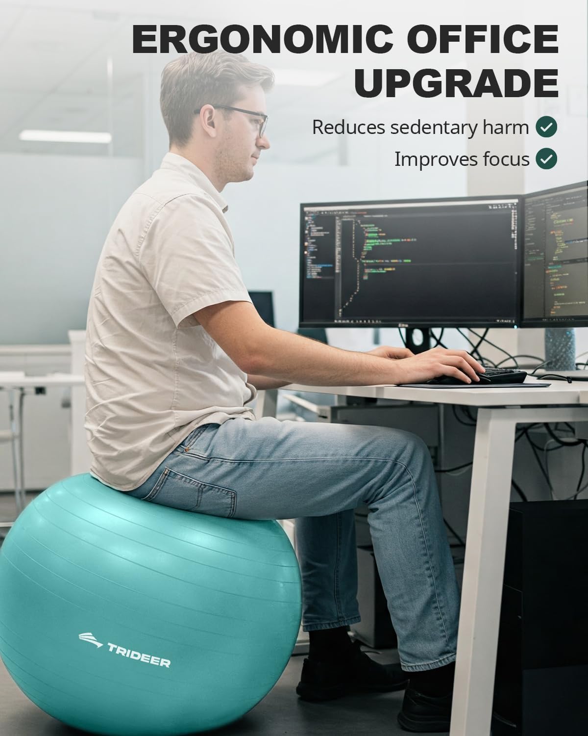 Trideer Yoga Ball – Anti-Burst Exercise Ball for Pregnancy, Office, Birthing, Stretching & Core Workout – Home Gym & Therapy