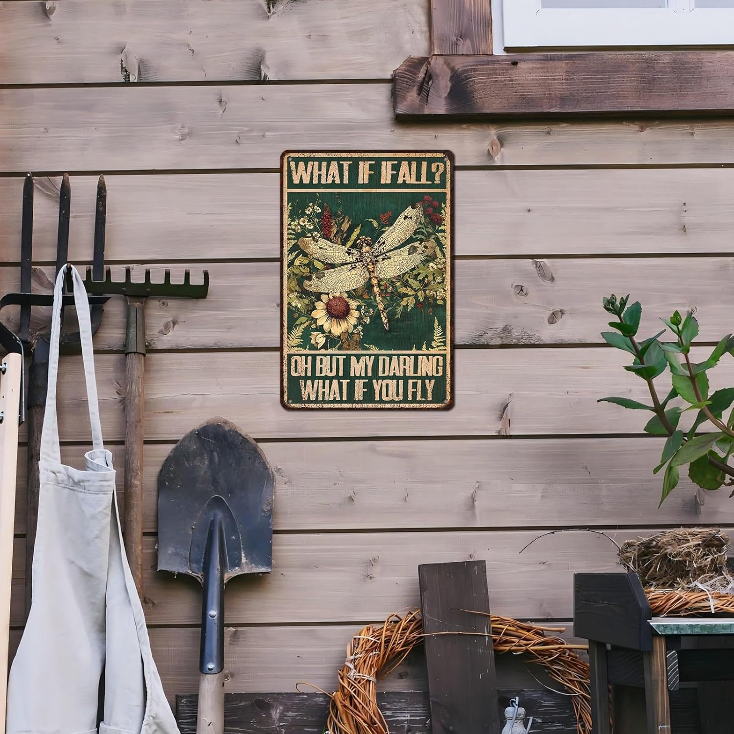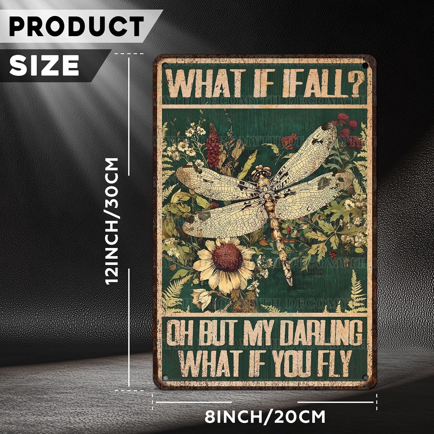 Dragonfly Vintage Tin Sign What If I Fall Metal Tin Sign for Home Bedroom 12 * 8inch