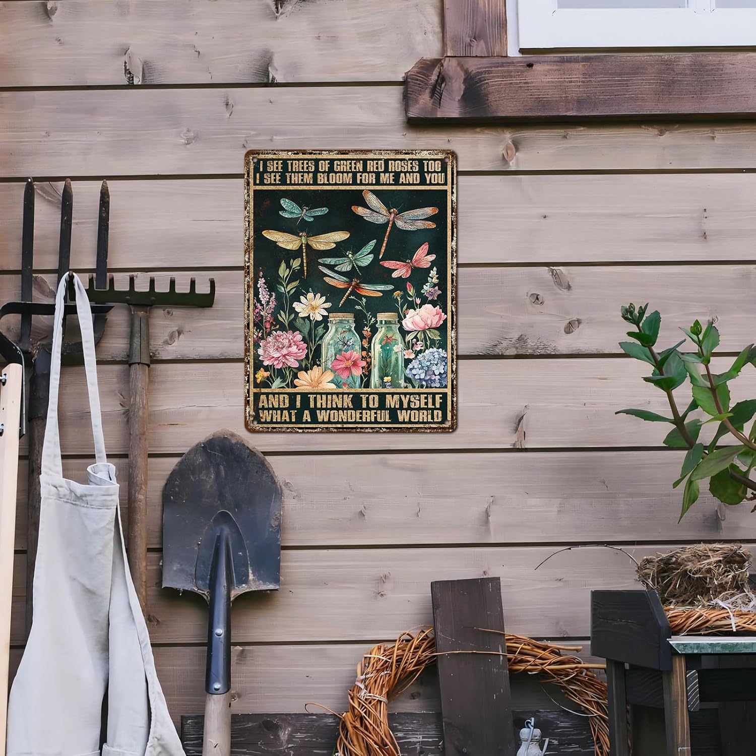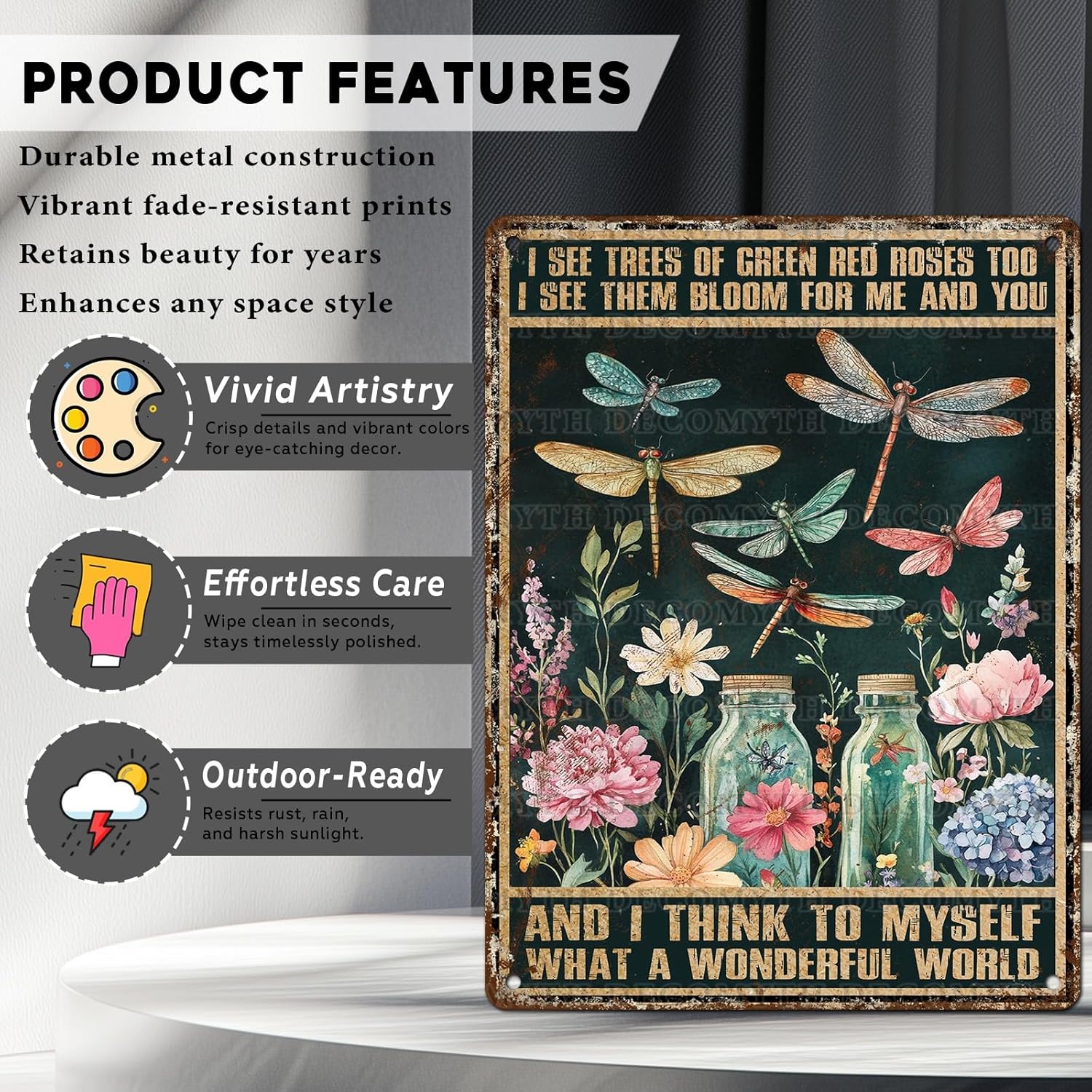 Dragonfly Decor And I Think To Myself What A Wonderful World Vintage Metal Tin Sign Decorative Plaque Poster 12 * 16inch