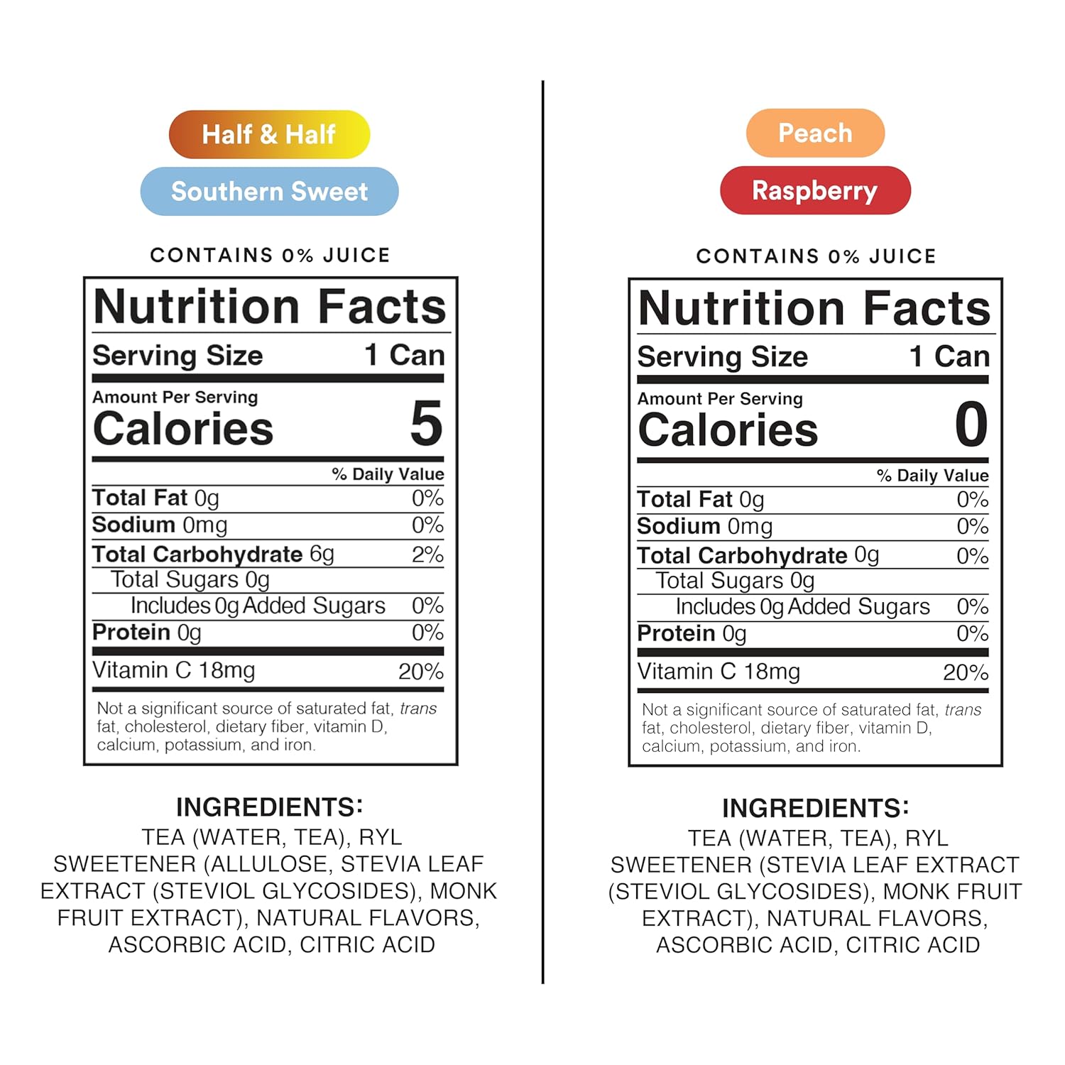- ZERO SUGAR, LOW CALORIE REFRESHMENT – Enjoy a guilt-free, ready-to-drink tea alternative with zero sugar and only 5 calories or less per can. Naturally sweetened with monk fruit and stevia – no artificial ingredients