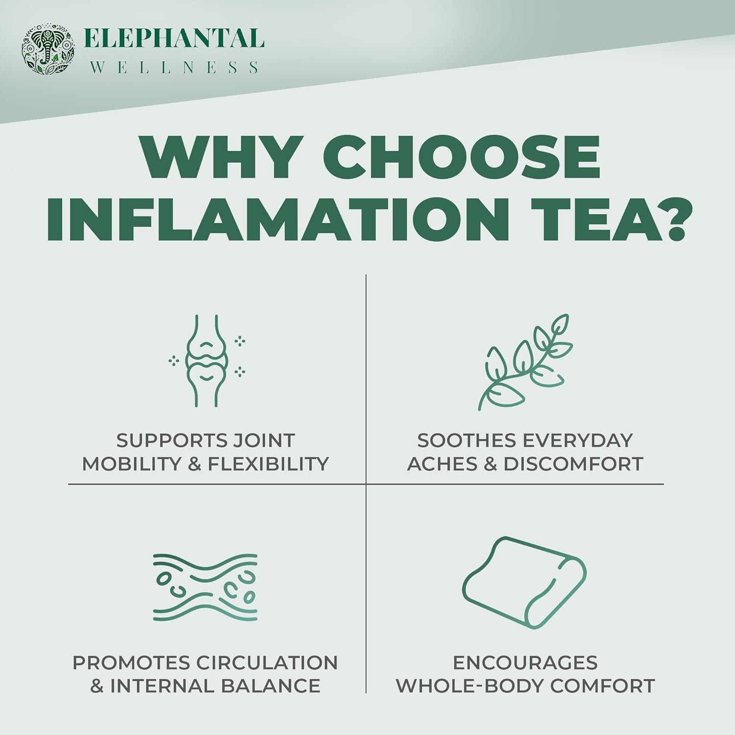Elephantal Wellness Premium Inflammation Herbal Tea | Comfort & Mobility Blend with Turmeric, Boswellia, White Willow Bark & Ginger | Handmade, Non-GMO, Caffeine-Free Loose Leaf, 4oz, 40 Servings