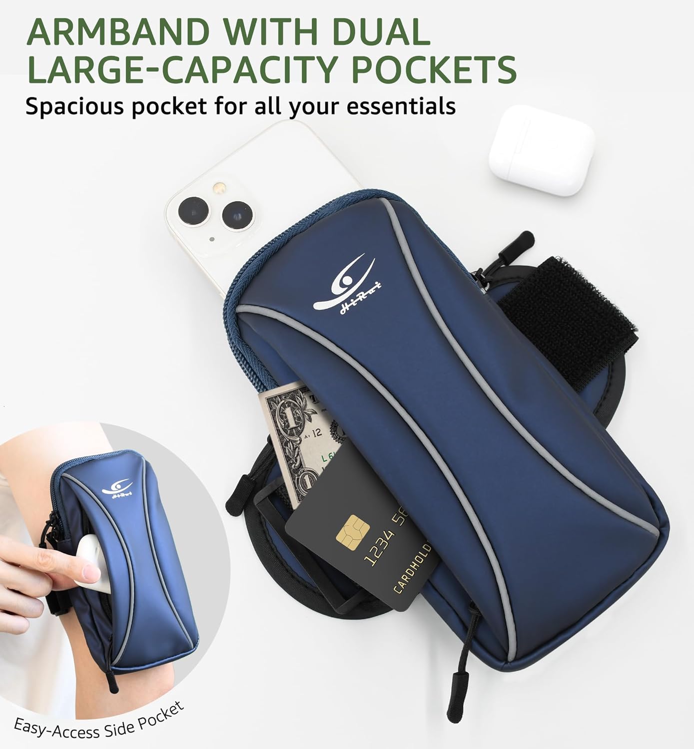 - Dual Large-Capacity Pockets: Carry all your essentials with ease thanks to the spacious dual-pocket design. Easily store your phone, credit cards, cash, and earbuds, so you’re always prepared on the go—whether you’re at the gym, cycling, or out for a run.