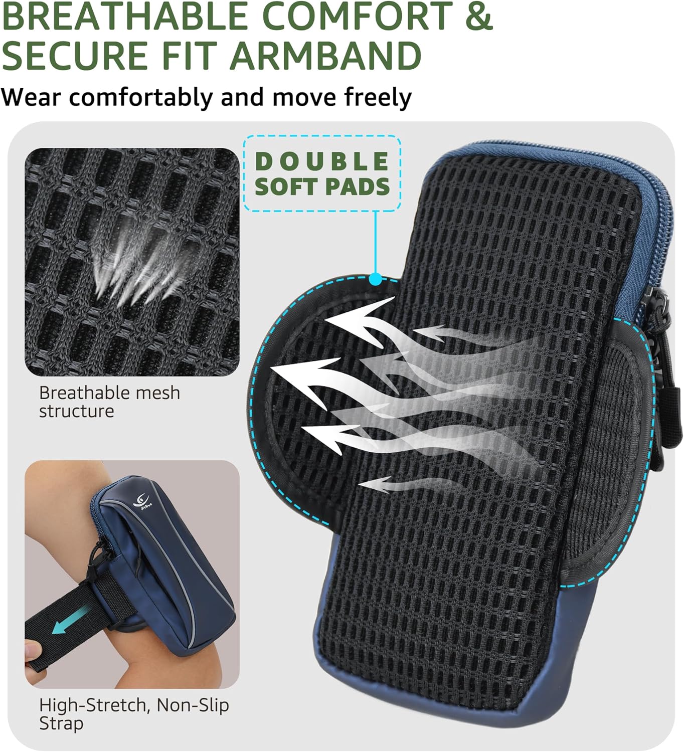 - Breathable Comfort & Secure Fit: Enjoy long-lasting comfort with the double soft pads and breathable mesh backing. The high-stretch, non-slip strap offers a snug, chafe-free fit on your arm or wrist—perfect for both men and women who love to move.