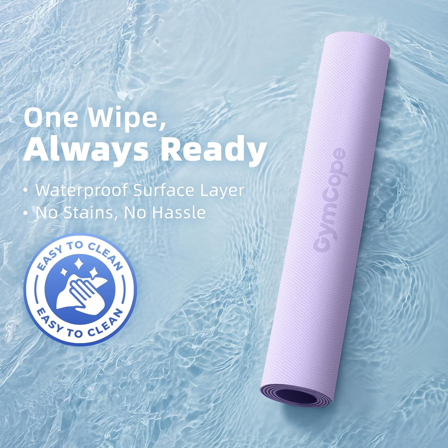 - [Waterproof & Easy to Clean – Wipes in Seconds] Closed-cell TPE resists sweat, moisture, and dirt. Just wipe with a damp cloth — no soaking or scrubbing — for a fresh, clean mat every session.