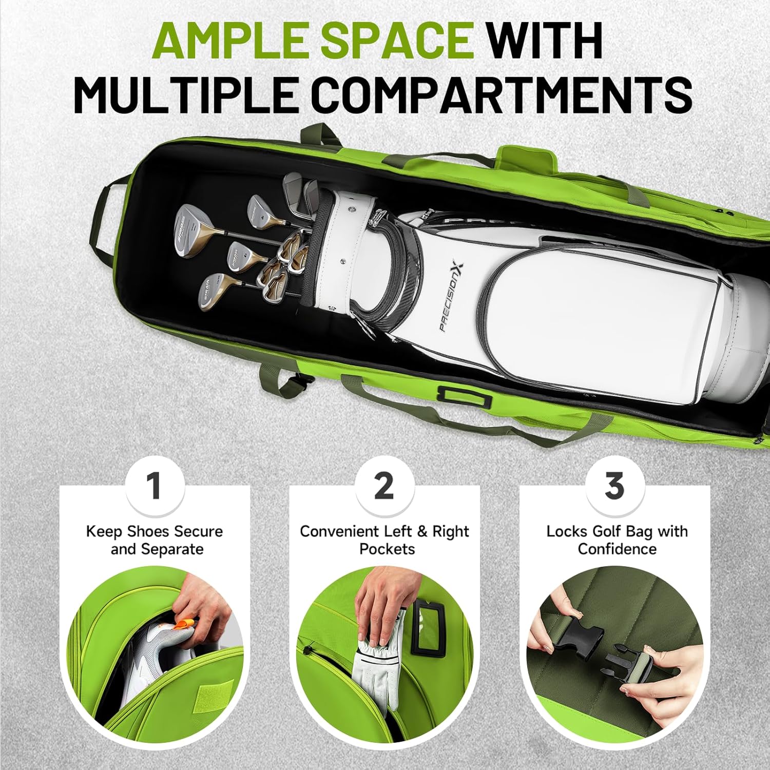 - 🌟𝐒𝐭𝐲𝐥𝐢𝐬𝐡 𝐃𝐞𝐬𝐢𝐠𝐧 𝐰𝐢𝐭𝐡 𝐑𝐞𝐥𝐢𝐚𝐛𝐥𝐞 𝐒𝐮𝐩𝐩𝐨𝐫𝐭: Available in vibrant colors, the MANUEKLEAR golf travel covers not only protect your gear but also make a bold statement on the course. Easily identify your bag among others while showcasing your personal style. We are dedicated to your satisfaction, offering a 30-day free exchange policy. If you have any questions or concerns, please feel free to reach out to us. Your peace of mind is our top priority.