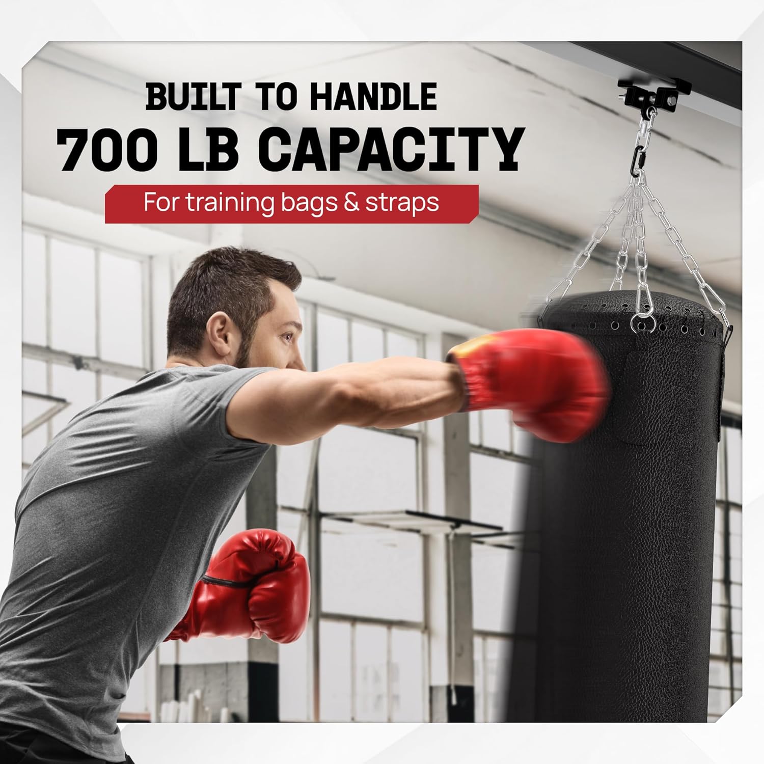 - FLEXIBLE SMOOTH MOTION: Features 1 carabiner & a 360 swivel that allows smooth motions for training bags, enhances training flow & minimizes strain on your mounting system; Heavy duty I-beam clamp is suitable as a punch bag hanger for home gym, designed for smoother motion & reduced vibration