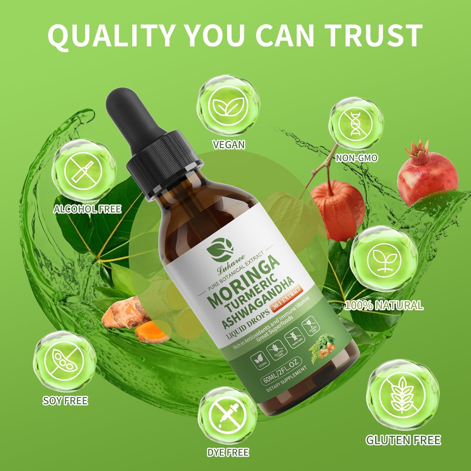 12-in-1 Lipsomal Moringa Leaf Drops with Ashwagandha Turmeric Quercetin, 98% Absorption & 30:1 Pure Moringa Extract for Energy Immune Joint Digestive Support, Vegan Non-GMO Gluten-Free