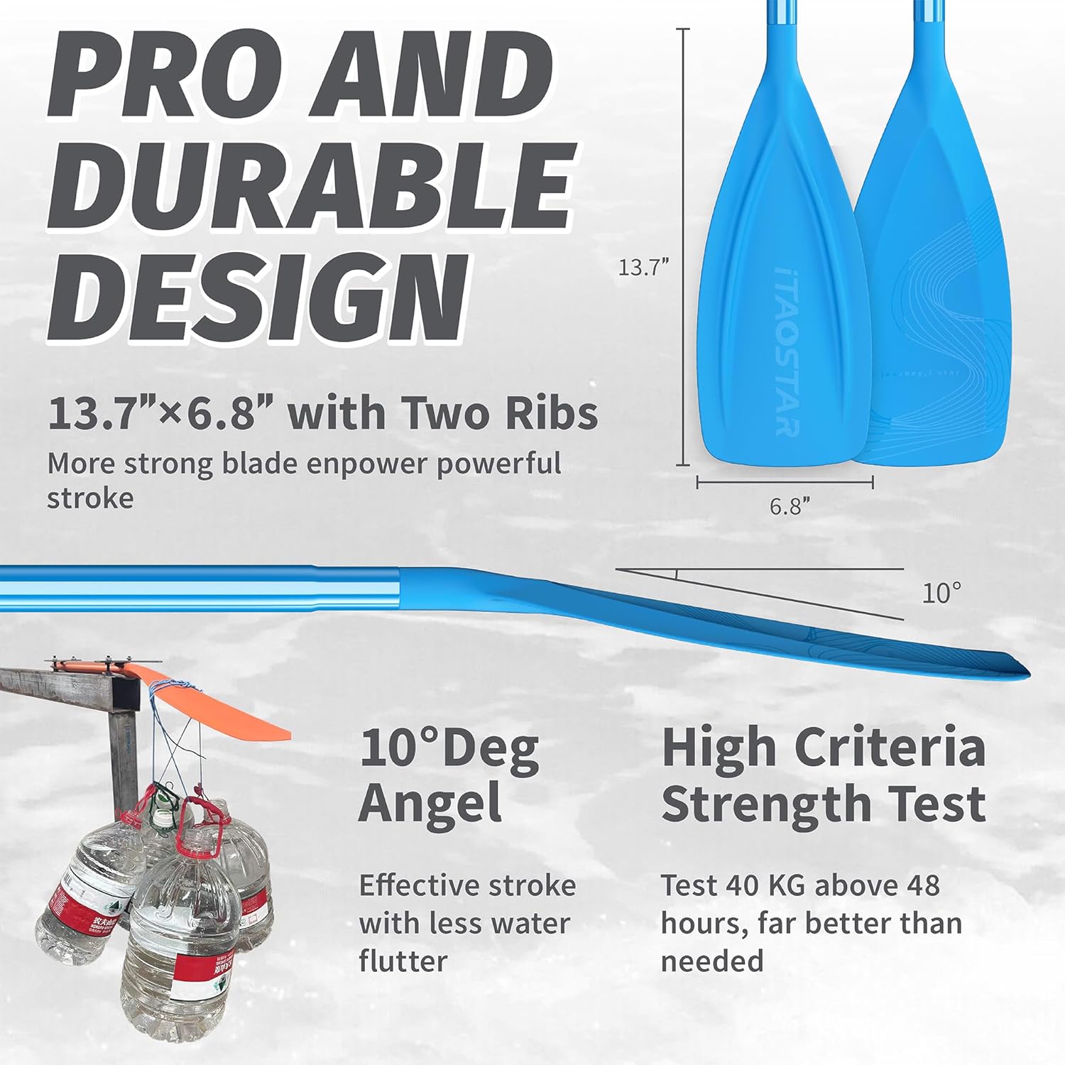 - Premium Durable Construction - Made with a high-quality aluminum alloy shaft and fiberglass-reinforced PP blade, this paddle delivers stiffness and durability. The corrosion-resistant blue coating extends its lifespan, making it ideal for beginners and intermediate paddlers