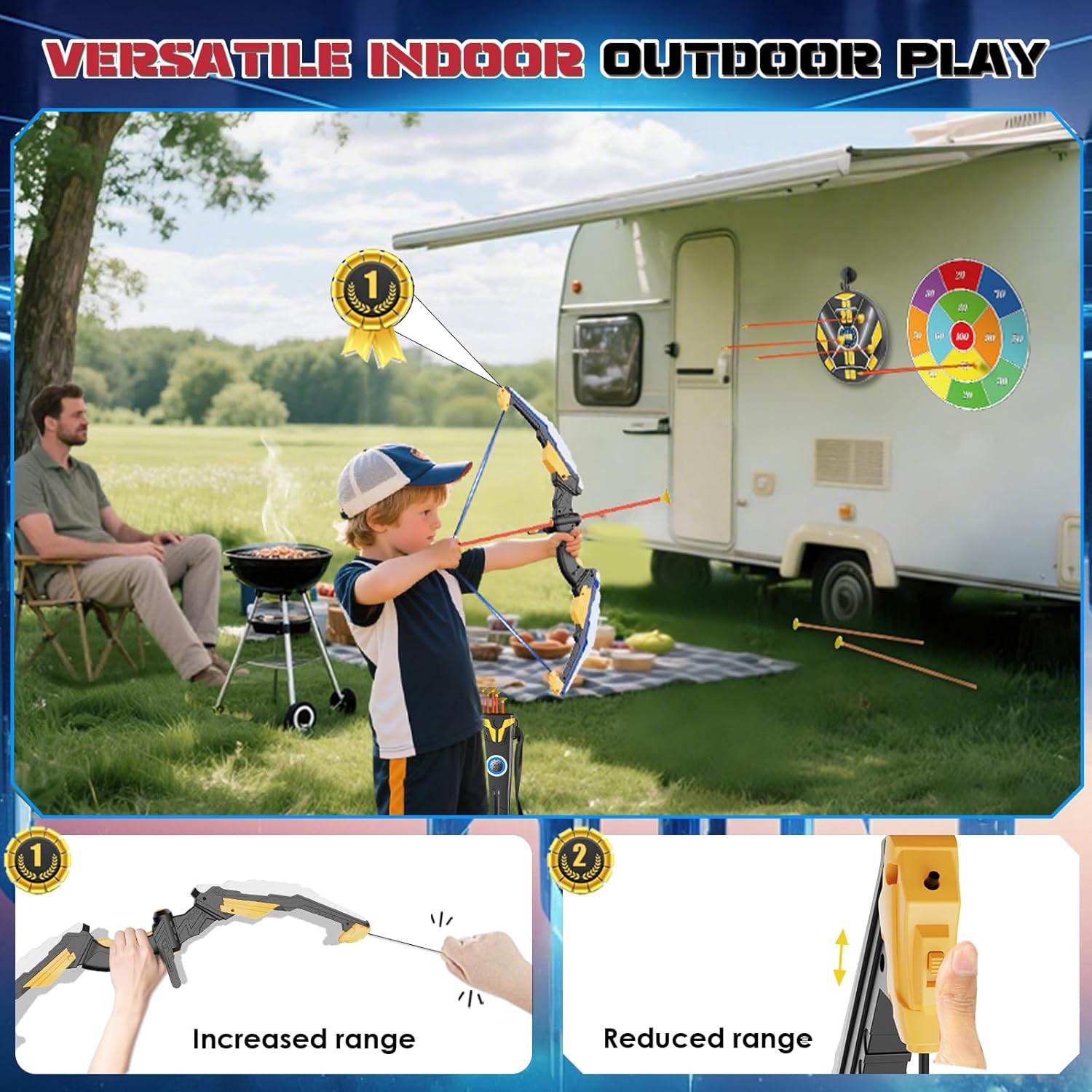 - Safety & Durability First: Designed with child safety as the top priority, this kids bow and arrow set features soft suction cup arrows equipped with vacuum-sealed tips, ideal for bow and arrow for kids 4-6 and older. The bows, crafted from premium elastic materials, withstand rough play while lightweight ergonomic grips ensure comfort for boys toys 6-8 years old or boy toys age 8-10 years old. Durable construction guarantees long-lasting fun, whether indoors or in backyard adventures.