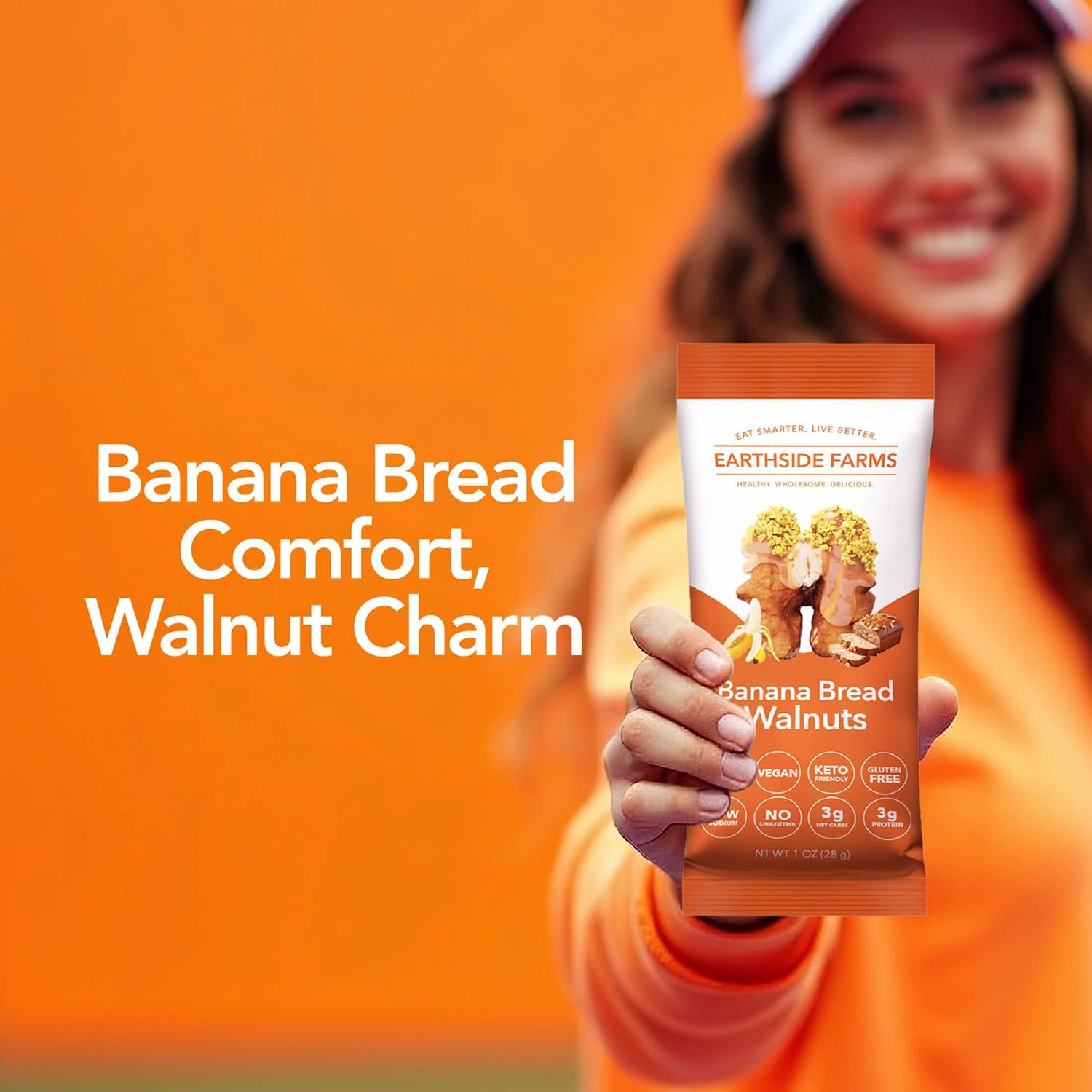 Earthside Farms Banana Bread Walnuts 1oz, 8 Pack – Vegan, Gluten-Free, Low Carb, Keto Friendly Snack – Sweet & Crunchy Candied Walnuts with Real Banana Flavor – Perfect for On-the-Go, Work, School
