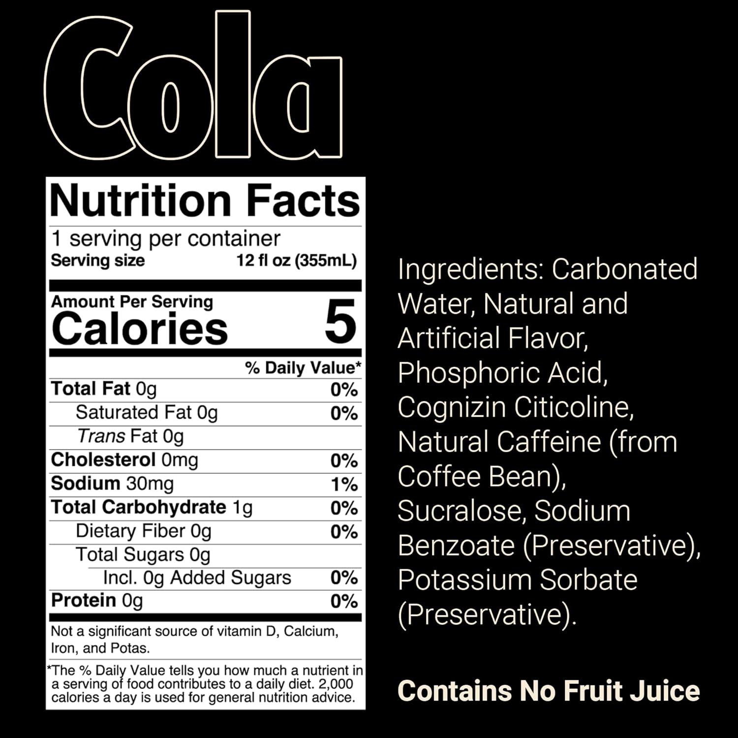 BUM Sugar-Free Energy Drink, Cola - Lightly Carbonated & No Artificial Colors, Natural Caffeine & Citicoline for Energy & Focus, Brain Boost & Workout Sports Beverage - 12 oz, Pack of 12