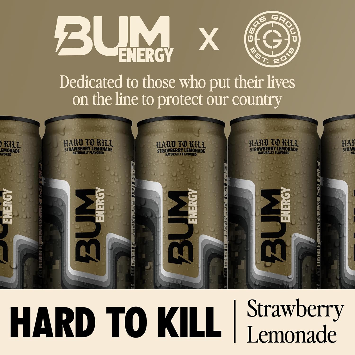 - Bum x GBRS Hard To Kill Energy Drink: This collaboration with Global Battlefield Research Solutions is dedicated to the brave men and women who put their lives on the line to protect our country. Bum Energy is made with stimulating natural caffeine and brain-boosting Cognizin, a dynamic duo that will deliver clean energy and sharpened focus. 12-pack of 12-oz cans.
