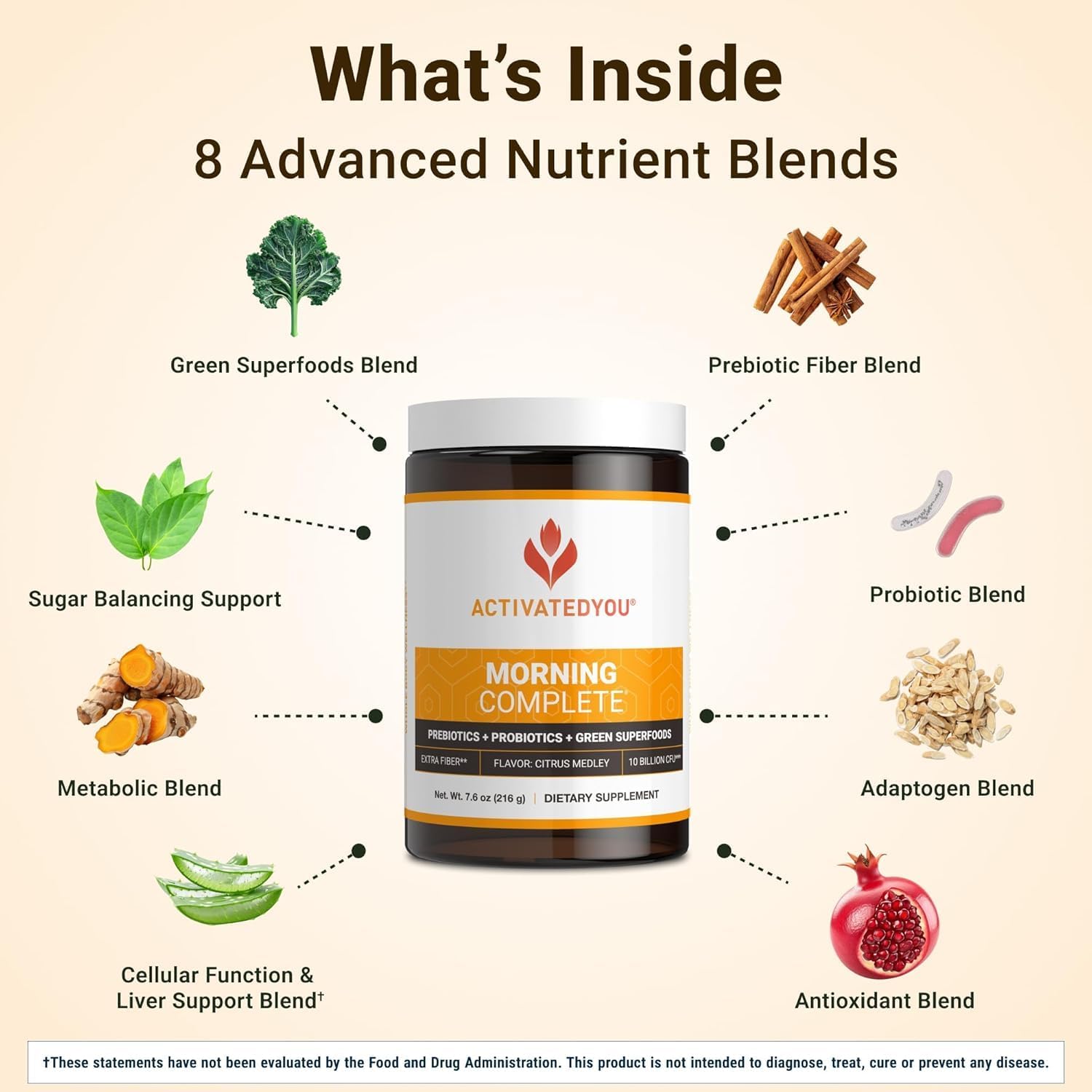 ACTIVATEDYOU Morning Complete Daily Wellness Greens Superfood Drink Mix for Gut Health w/Prebiotics, Probiotics, Antioxidants, Green Superfoods, 10 Billion CFUs (3 Pack, Citrus Medley)