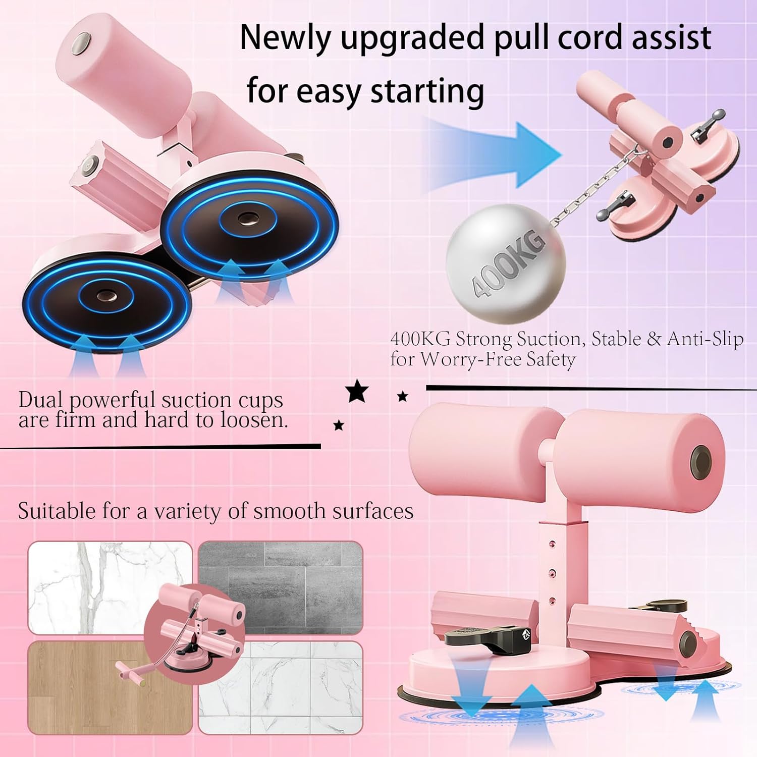 - <p><b>Sturdy & Secure Design:</b></p>The dual suction cup base of the abdominal exerciser locks tightly to any smooth surface, maximizing stability during sit-ups and core exercises. Enjoy slip-free workouts with reinforced support for intense ab training sessions.
