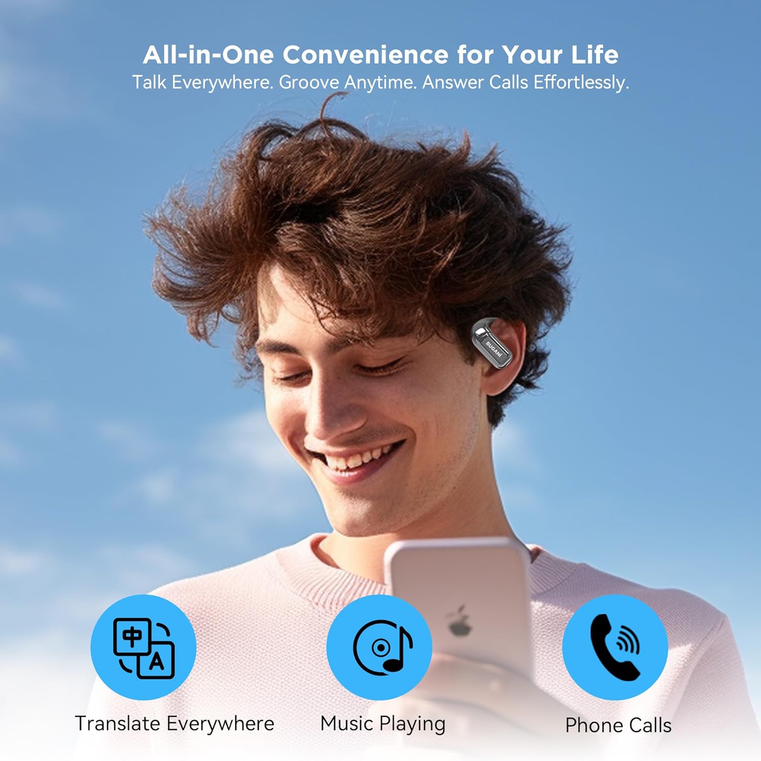 - 【Open-Ear Comfort & Awareness】 Experience the freedom of our open-ear design. Lightweight, non-intrusive ear hooks crafted from premium ABS contour perfectly to your ear, eliminating ear canal pressure. Enjoy all-day comfort whether working, commuting, or relaxing. The open structure keeps you aware of your surroundings, making these earbuds the safest choice for jogging, cycling, or navigating busy streets. Easily hold conversations without removing them.