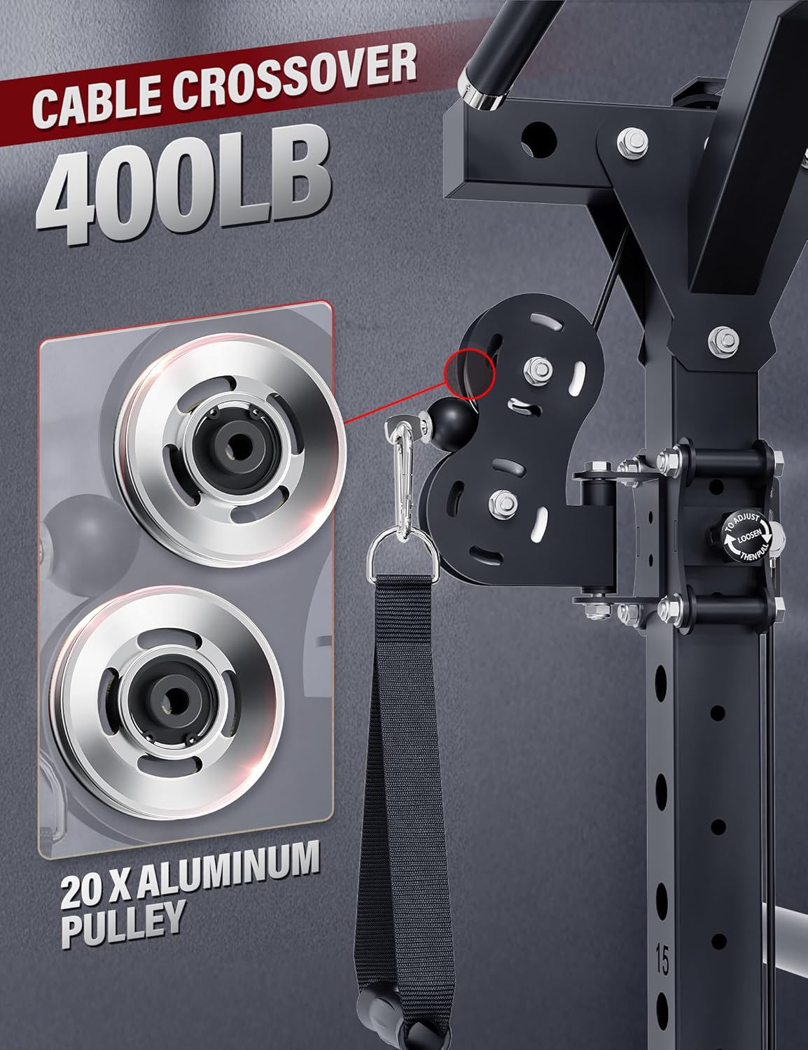 - Multiple Accessories Included for Total Workout Variety - The Drone2 Premium workout rack comes fully equipped with a range of home gym accessories including dip handles, a T-bar, barbell pad, tricep rope, ankle straps, wrist wraps, a weightlifting belt, and a lat pulldown bar. Whether you are targeting specific muscle groups or going for weight lifting, these accessories unlock countless workout possibilities.