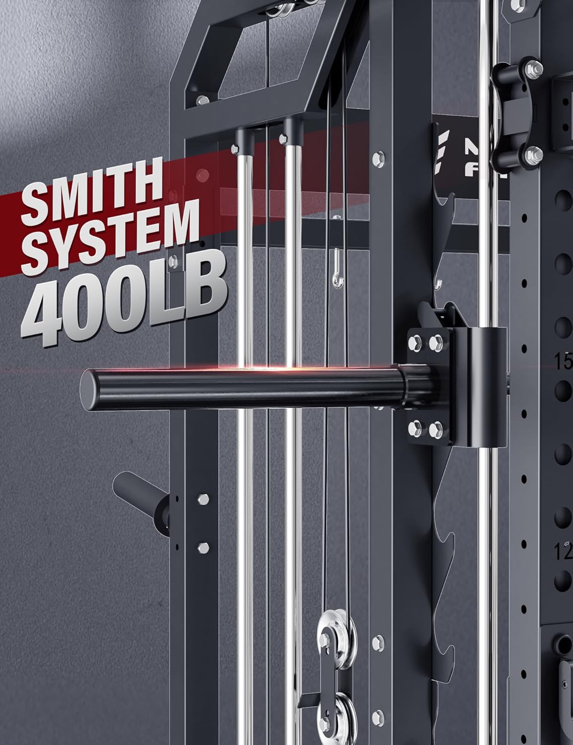 Major Fitness Drone2 Advanced Training Smith Machines– All-in-One Home Gym Squat Rack with Aluminum Pulley Set , Weight Bar, Dual LAT Pull-Down Systems & Cable Crossover Machine for Full-Body Workouts