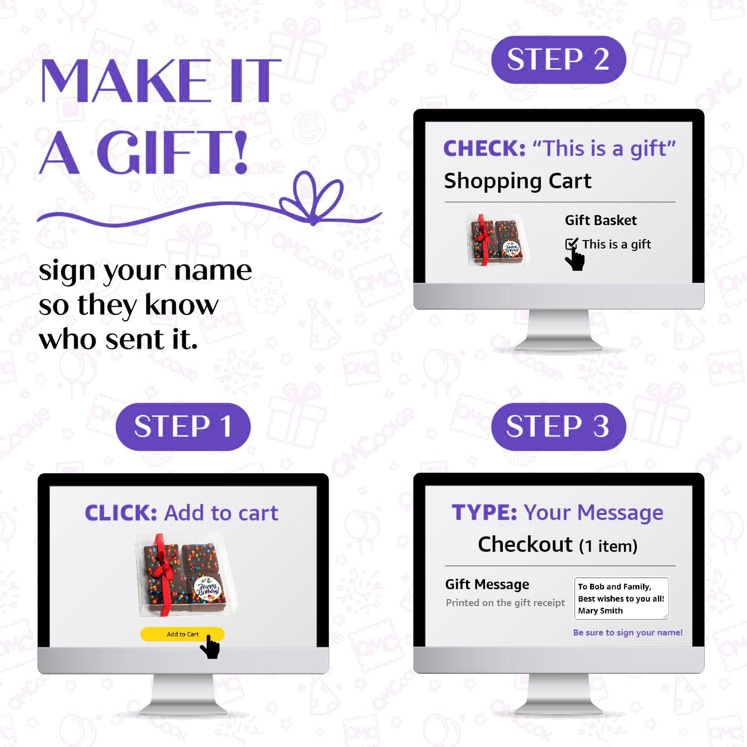 - Each fudgy brownie are individually wrapped and packaged in this cute birthday gift box with complemetary ribbon.
