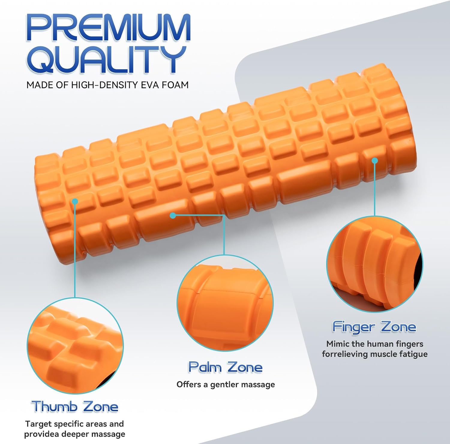 Foam Roller High Density Foam Roller Set for Deep Tissue Muscle Massage, 18" Trigger Point Fitness Exercise Massage Roller, Self-Myofascial Release for Whole Body (Orange)