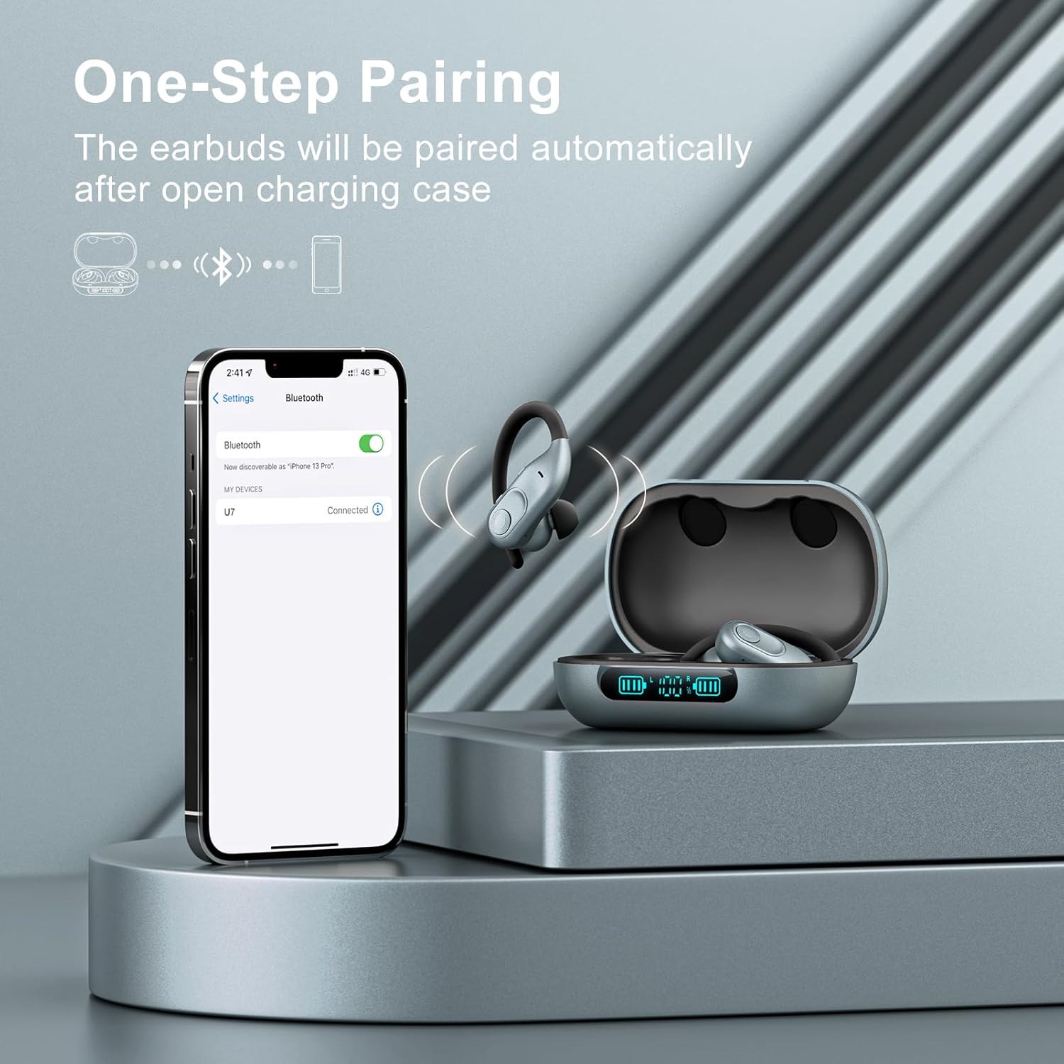 - Latest One-step Pairing Technology: No need to press any button to activate the wireless headphones. This Bluetooth earbuds can be automatically powered on and paired after open the charging case. Meanwhile Bluetooth headphones can also be automatically powered off and charged after putting back into the charging case. Simply one press to answer or reject phone calls, Bluetooth pairing, power on and power off, pretty easy to use.